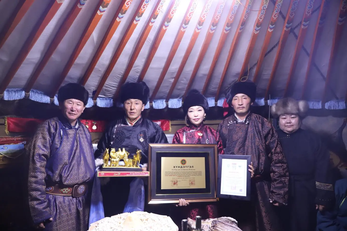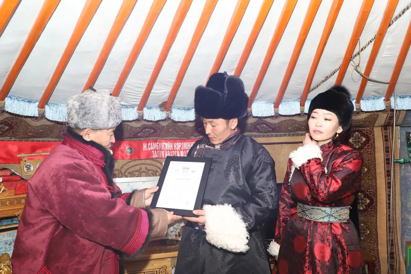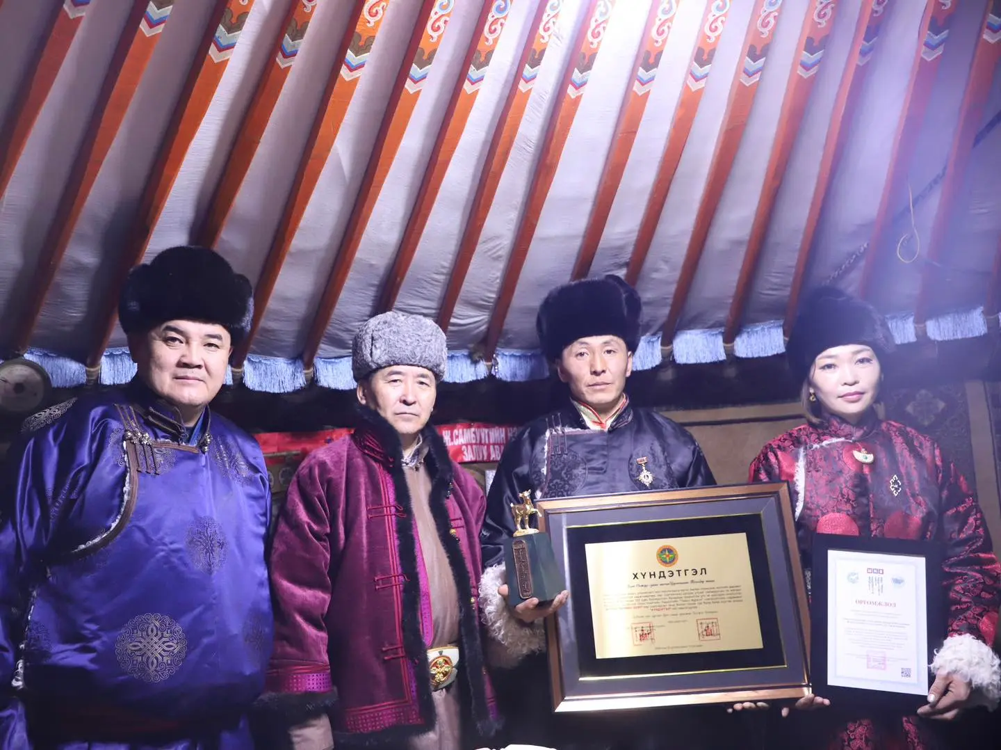 Алтан ишигний эзнээр тодорсон Баян-Өнжүүл сумын Цээл багийн малчин Цэрэнпилийн Төгөлдөр, гэргий Лхагвасүрэнгийн Шагдарсүрэн нарын шагналыг гардуулж өглөө.