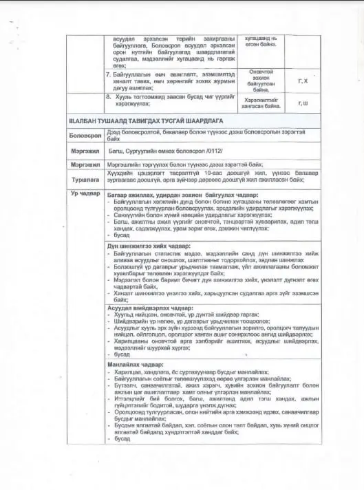 Замын-Үүд сумын хүүхдийн 1 дүгээр цэцэрлэгийн албан хаагчдын ажлын байрны тодорхойлолт