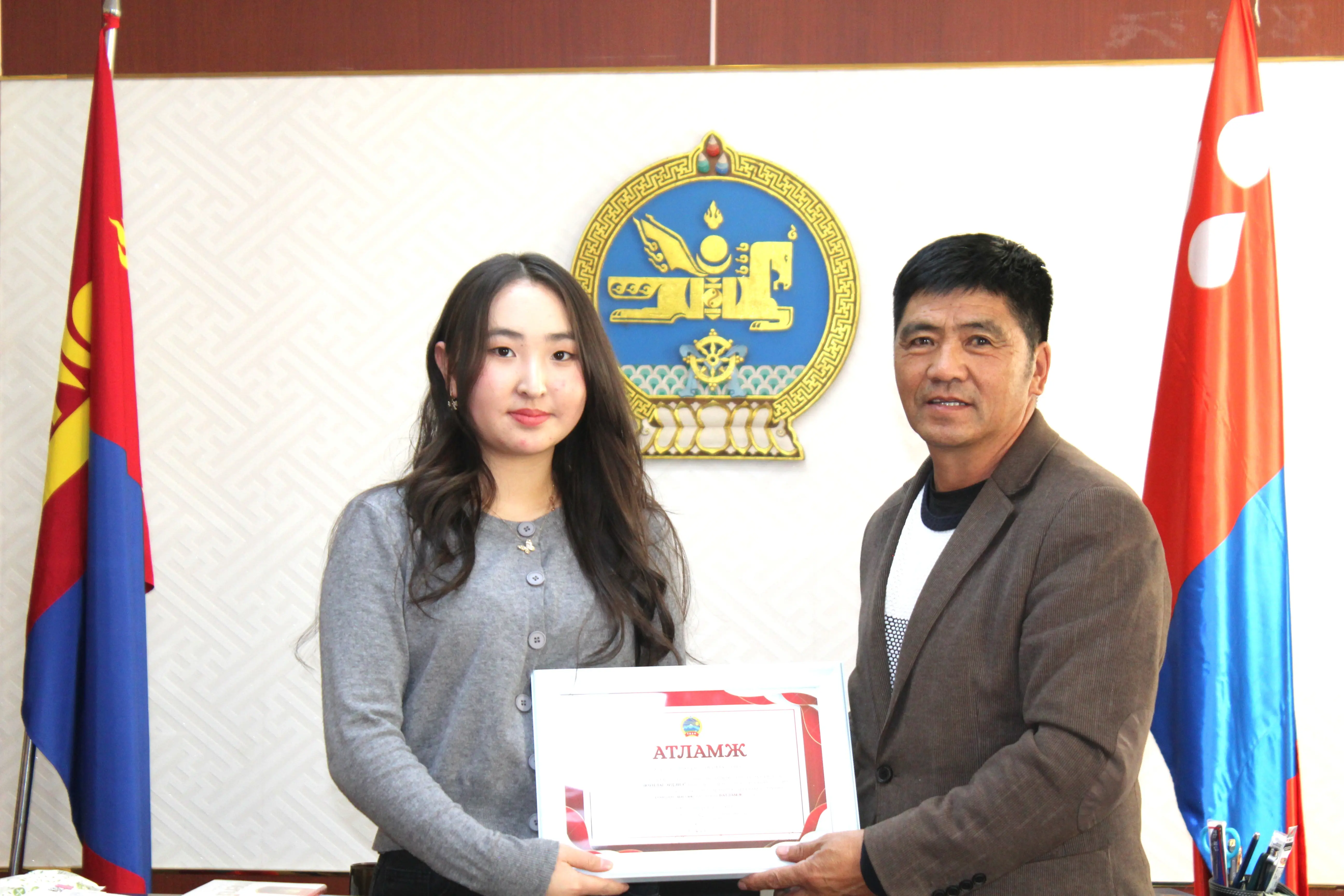 Сурлагын амжилтыг урамшуулах, боловсролын чанарыг дээшлүүлэх зорилгоор хэрэгжүүлж буй "ОЮУНЛАГ ЭРДЭНЭ" хөтөлбөрт хамрагдах болзлыг ханган 2025 оны элсэлтийн шалгалтын оноогоор тэргүүлсэн сурагч нарт сургалтын төлбөрийн тэтгэлэг гардуулав.