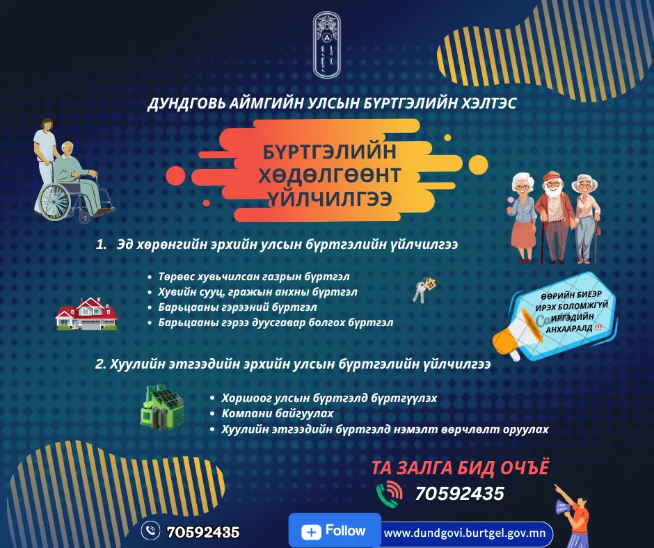 Дэлгэрэнгүй мэдээлэл авах: Улсын бүртгэлийн ерөнхий газар Дундговь аймгийн улсын бүртгэлийн хэлтэс