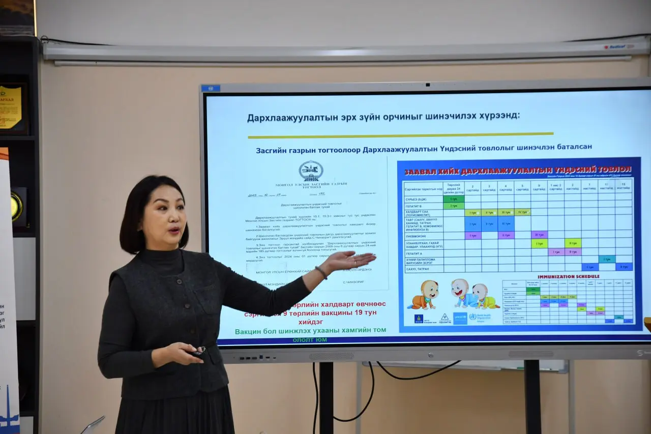 НҮБ-ын Хүүхдийн сангийн санхүүгийн дэмжлэгтэй хэрэгжиж буй “Хүний папиллома вирус болон улаанбурхан өвчний халдварын эсрэг дархлаажуулалтын хамрагдалтыг нэмэгдүүлэх” төслийн хүрээнд Хэрлэн сумын 1, 8, 5, 11, Хан-Уул, Шинэ хөгжил, Долоодой, Фловер сургууль, Гэр бүл, хүүхэд, залуучуудын хөгжлийн газар, аймгийн Улаанзагалмайн хороо, Дорнод Гэр бүлийн сайн сайхны ниймгэмлэгийн багш, менежер, нийгмийн ажилтан, арга зүйч, өсвөрийн гишүүдэд сургалт зохион байгууллаа.