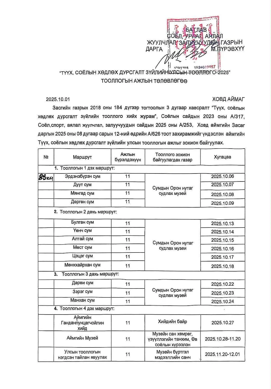 ![]() 📜 📣 ХОВД АЙМГИЙН СУМДЫН ТҮҮХ, СОЁЛЫН ХӨДЛӨХ ДУРСГАЛТ ЗҮЙЛИЙН УЛСЫН ТООЛЛОГО АМЖИЛТТАЙ ЗОХИОН БАЙГУУЛАГДЛАА. 📅 Засгийн газрын 2018 оны 184 дүгээр тогтоолын гуравдугаар хавсралтаар баталсан "Түүх, соёлын хөдлөх дурсгалт зүйлийн тооллого хийх журам", Соёлын сайдын 2023 оны А/317 дугаар тушаал, Соёл, спорт, аялал жуулчлал, залуучуудын сайдын 2025 оны А/253 тушаалын хэрэгжилтийг хангах үүднээс Ховд аймгийн Түүх, соёлын хөдлөх дурсгалт зүйлийн улсын тооллого зохион байгуулах салбар комисс 📘📝 Түүх, соёлын хөдлөх дурсгалт зүйлийн улсын тооллогыг зохион байгуулснаар нэн яаралтай сэргээн засварлах шаардлагатай хөдлөх дурсгалын жагсаалт гаргах, тухайн дурсгалт зүйлийн шинж чанар, бүрэн бүтэн байдалд хяналт тавих, эерэг болон сөрөг нөлөөлж буй хүчин зүйлүүдийг тодорхойлох, нэгдсэн тоон дүн болон тооллогын мөрөөр авах арга хэмжээний санал боловсруулах зэрэг үр дүн, ач холбогдолтой юм. | ![]() | ![]() | ![]() |