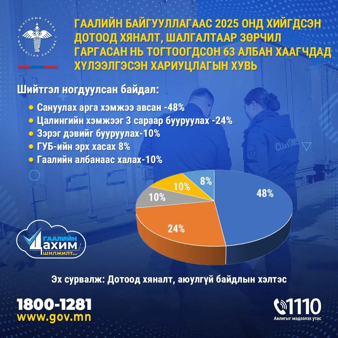 ГЕГ: Гаалийн байгууллагаас 2025 онд 63 Гаалийн улсын байцаагчид сахилгын шийтгэл оногдуулсан.