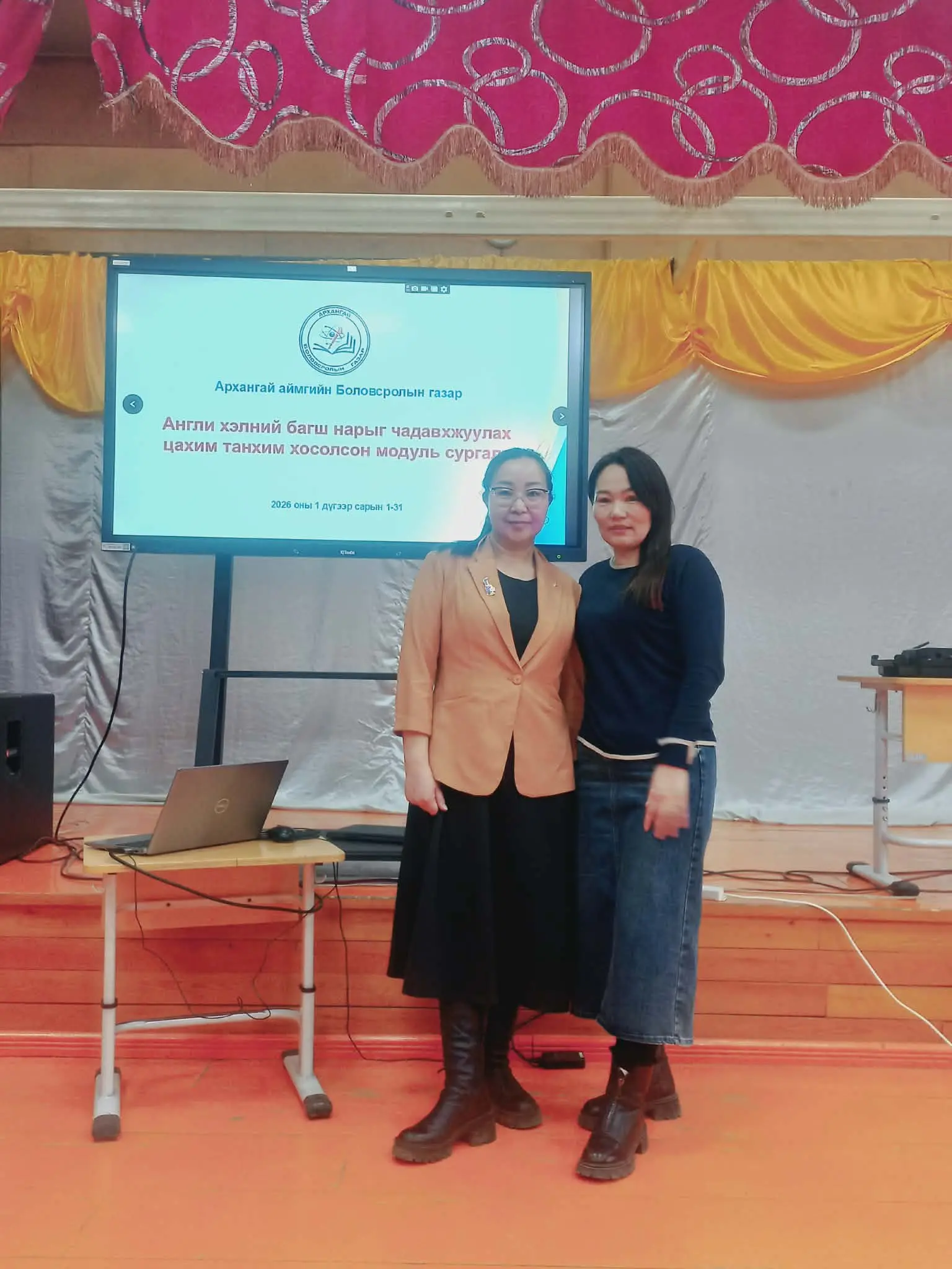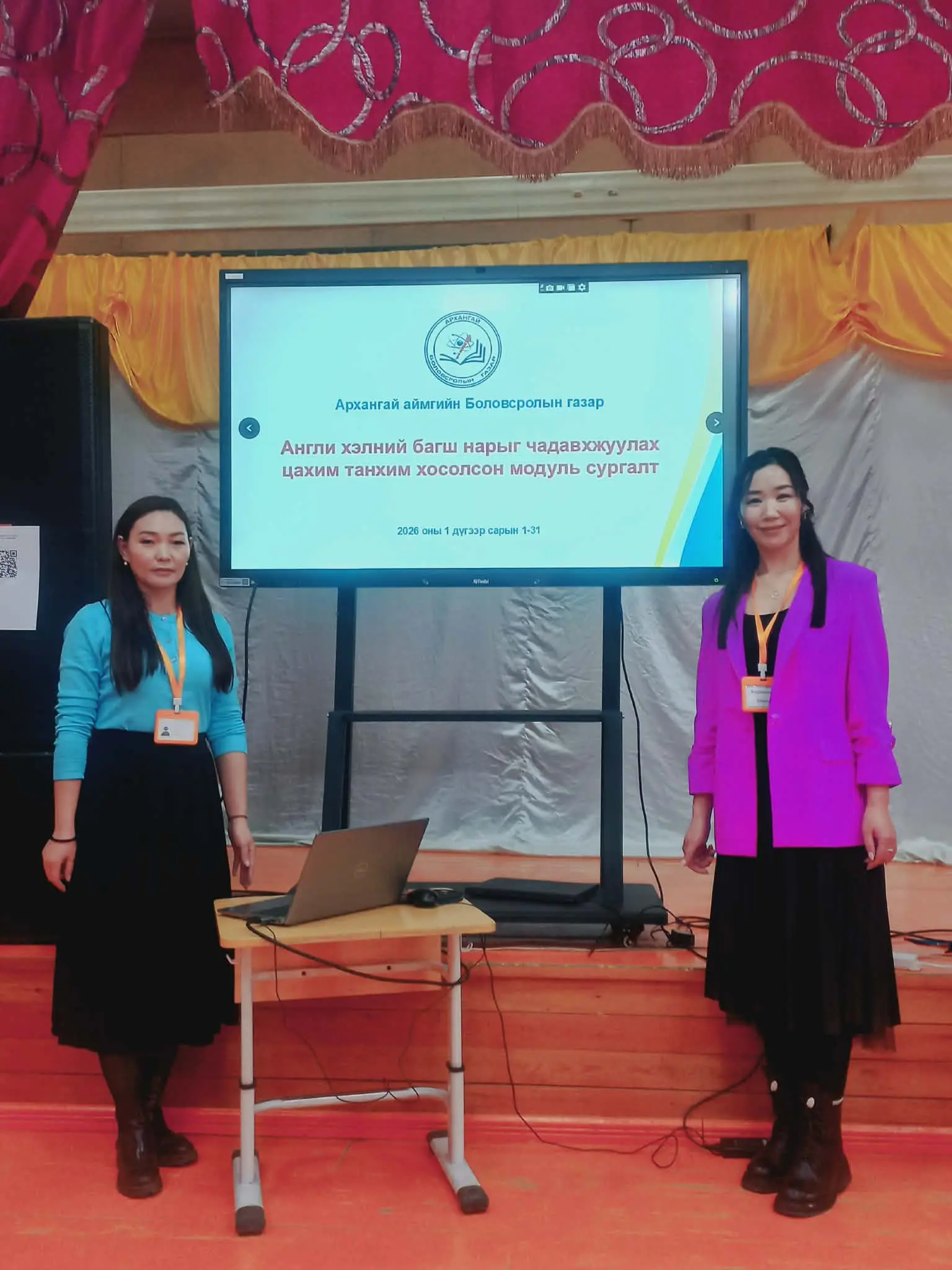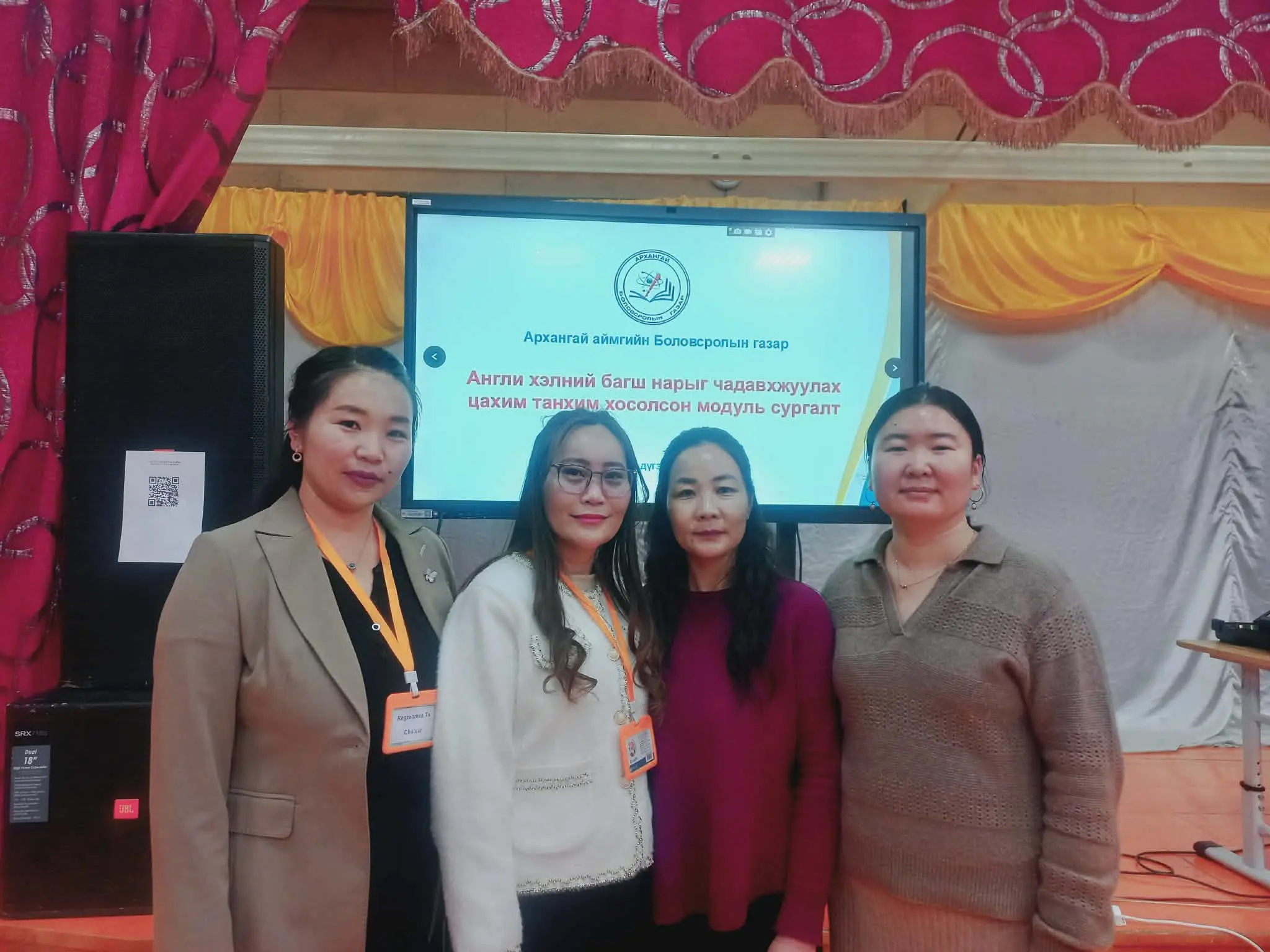 Англи хэлний багш нарыг чадавхжуулах орон нутгийн модуль сургалт амжилттай зохион байгуулагдаж Архангай аймгийн 27 ЕБС-ийн 96 англи хэлний багш хамрагдлаа. Энэхүү сургалт 1 сарын 31-нийг дуустал цахим хэлбэрээр үргэлжлэн явагдана. Сургалт зохион байгуулахад гүн туслалцаа үзүүлсэн Эрдэнэбулган сумын 1 дүгээр сургуулийн захиргаа, гадаад хэлний судлагдахууны баг, захиргаа аж ахуйн хамт олонд бүх оролцогчдын нэрийн өмнөөс гүн талархал илэрхийлье.