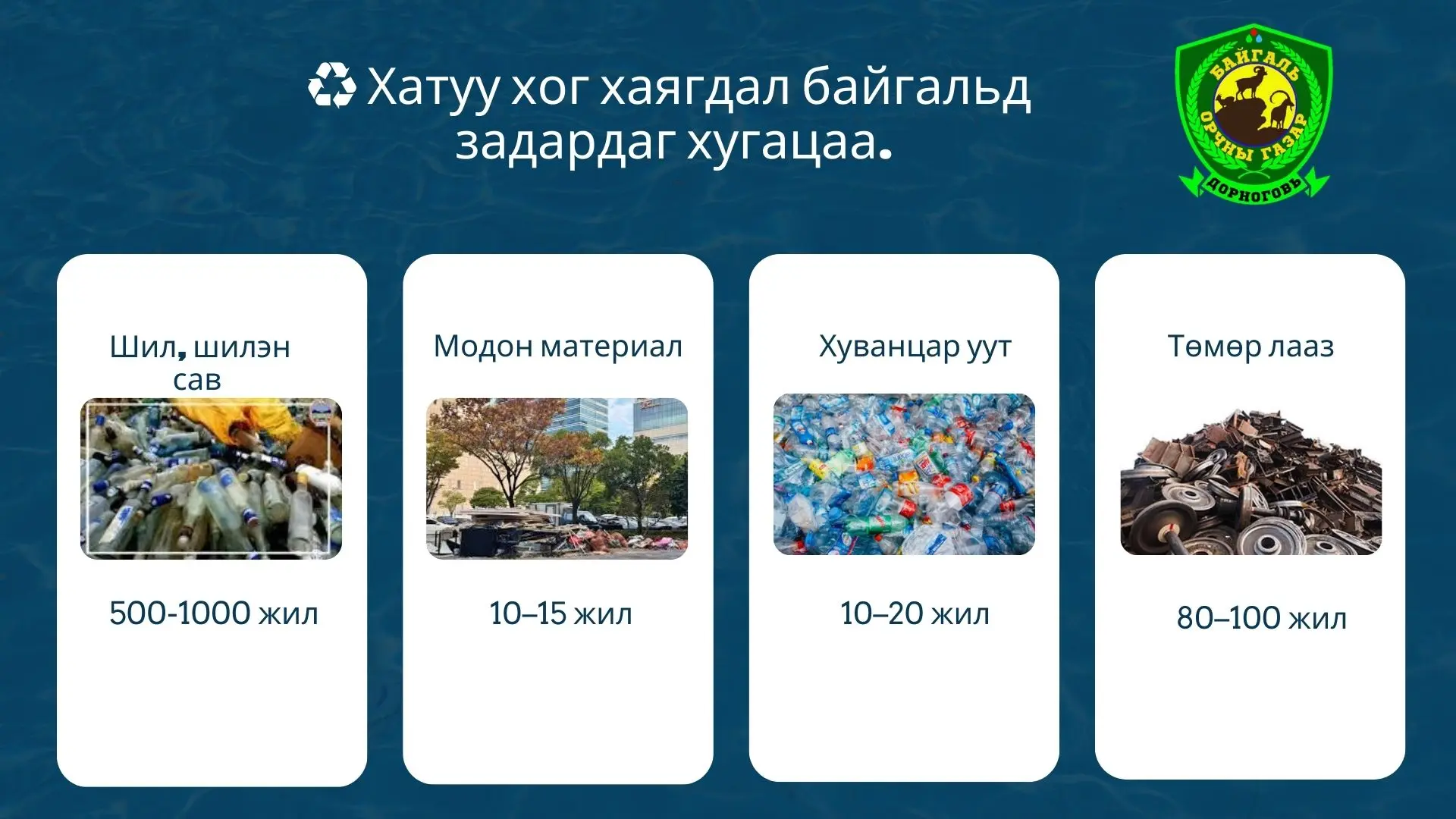 Хог хаягдал байгальд өөр өөр хугацаанд задардаг бөгөөд зарим нь хэдхэн хоног, зарим нь хэдэн зуун жил, бүр мянган жилээр ч үлдэж байдаг.