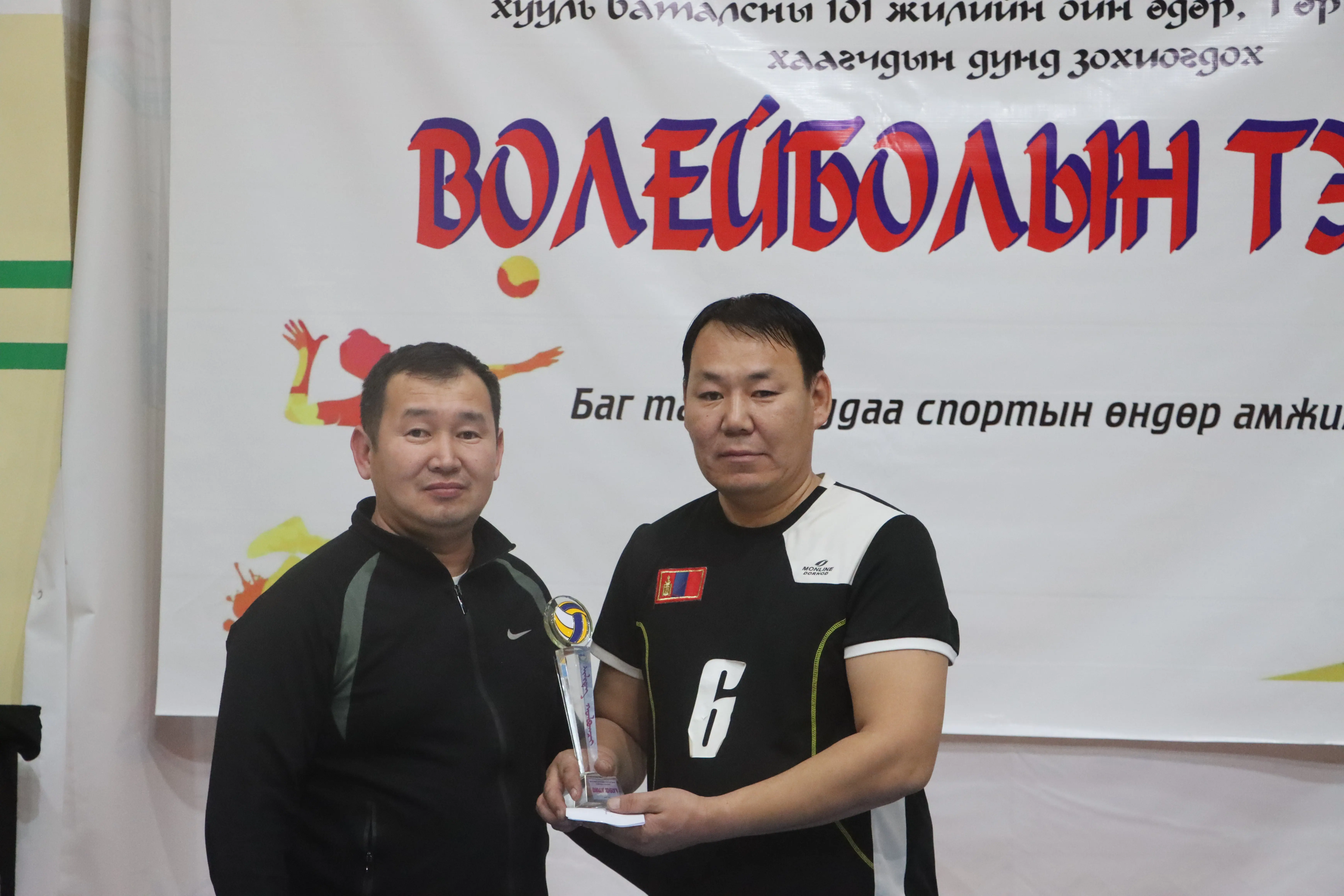 Монгол Улс анхдугаар үндсэн хуулиа баталж, Монгол Улсаа тунхагласны 101 жилийн ойг тохиолдуулан сумын төрийн албан хаагчдын дунд Волейболын тэмцээн зохион явууллаа. Энэ удаагийн тэмцээнийг Засаг даргын Тамгын газрын хамт олон зохион байгуулсан. Ирэх жилийн тэмцээнийг энэ жилийн тэмцээний шилжин явах цом хүртсэн Хилийн 0275-р ангийн хамт олон зохион байгуулахаар боллоо. Тэмцээнд 11 байгууллагын эрэгтэй 8 баг, эмэгтэй 9 баг өрсөлдөж