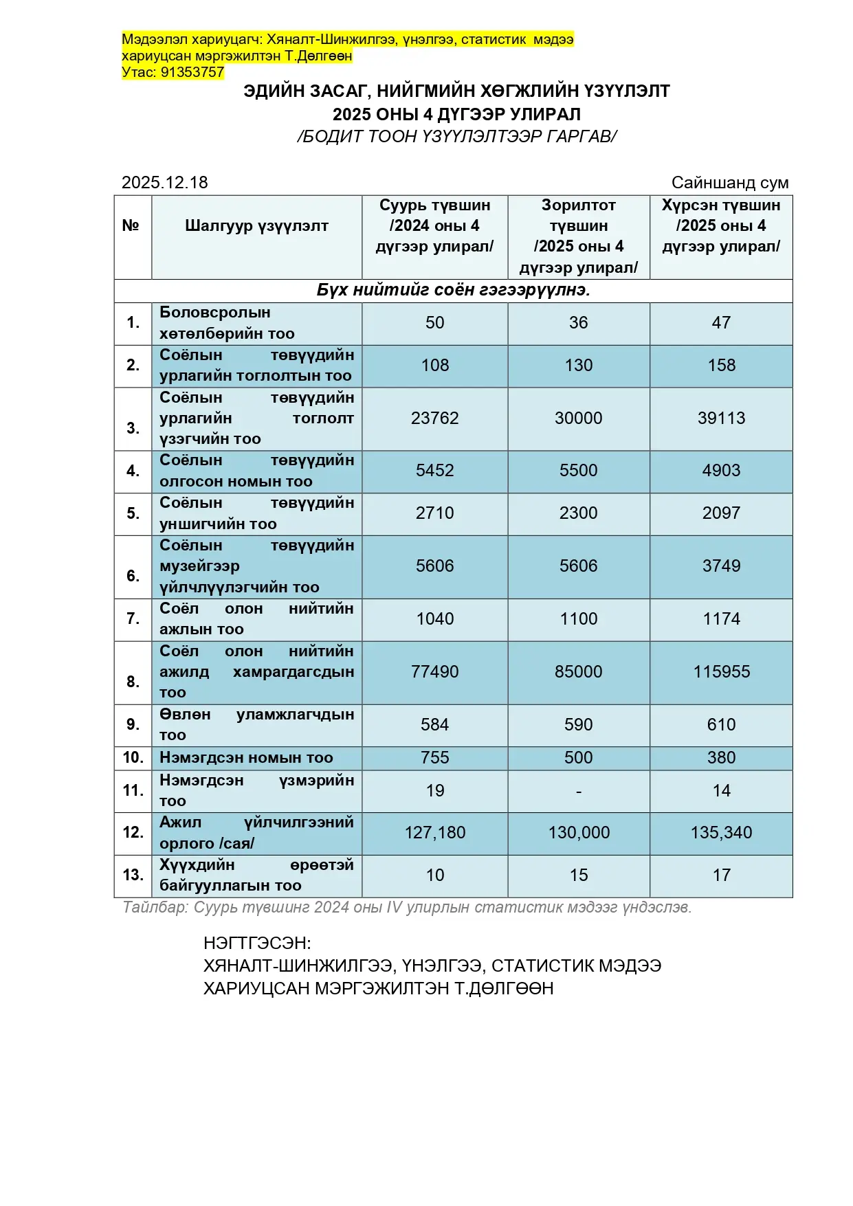 Мэдээлэл хариуцагч: ХШҮ статистикийн мэргэжилтэн Т.Дөлгөөн