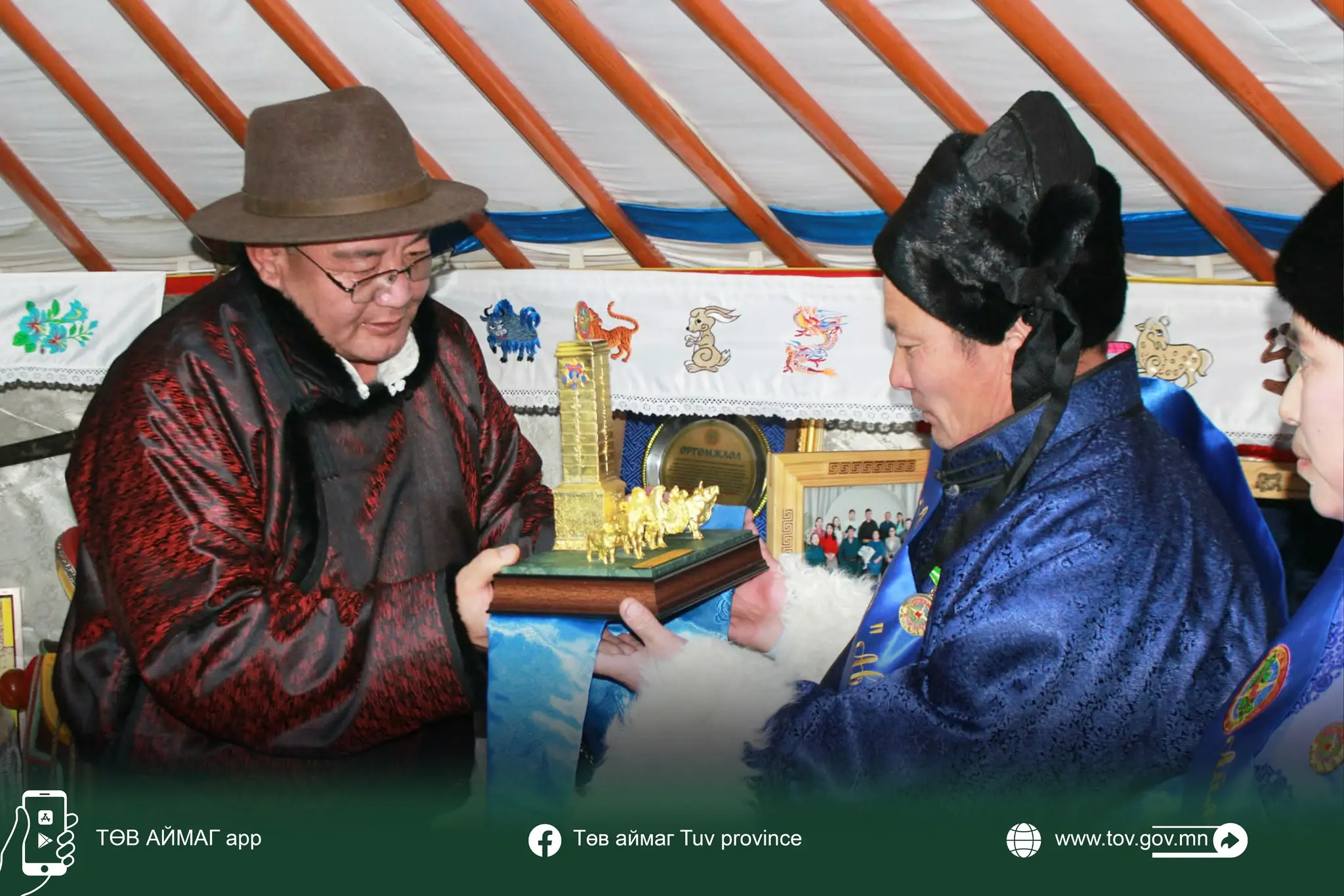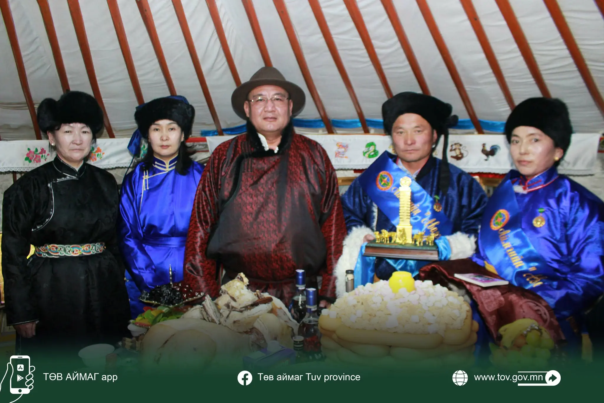 Аймгийн “Аварга малчин өрх”-өөр тодорсон Алтанбулаг сумын малчин Л.Пунцагдашийн гэр бүлд шагналыг гардуулж өглөө.