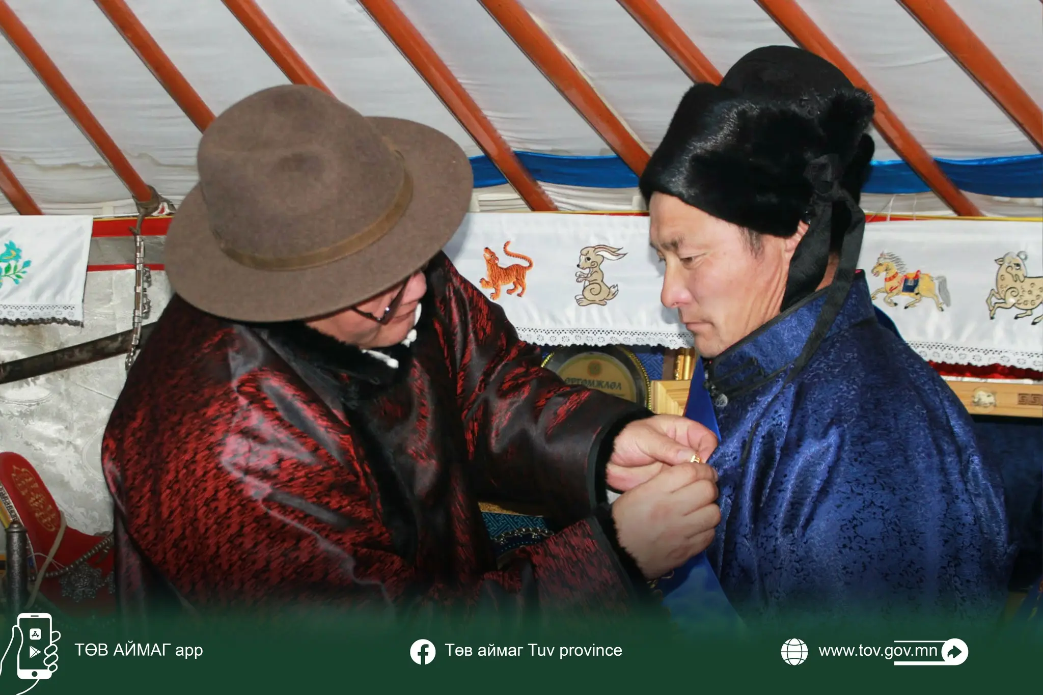 Аймгийн ЗДТГ-ын БОНХОБТХ-ийн дарга Э.Уянга, ЭМГ-ын дарга Ч.Алтантуул, Алтанбулаг сумын Засаг дарга Д.Батсуурь нар "Сүрээр дарагч" хэмээх гал морин жилийн Сар шинийн баярын босгон дээр аймгийн “Аварга малчин өрх”-өөр тодорсон Алтанбулаг сумын малчин Л.Пунцагдашийн гэр бүлд шагналыг гардуулж өглөө.