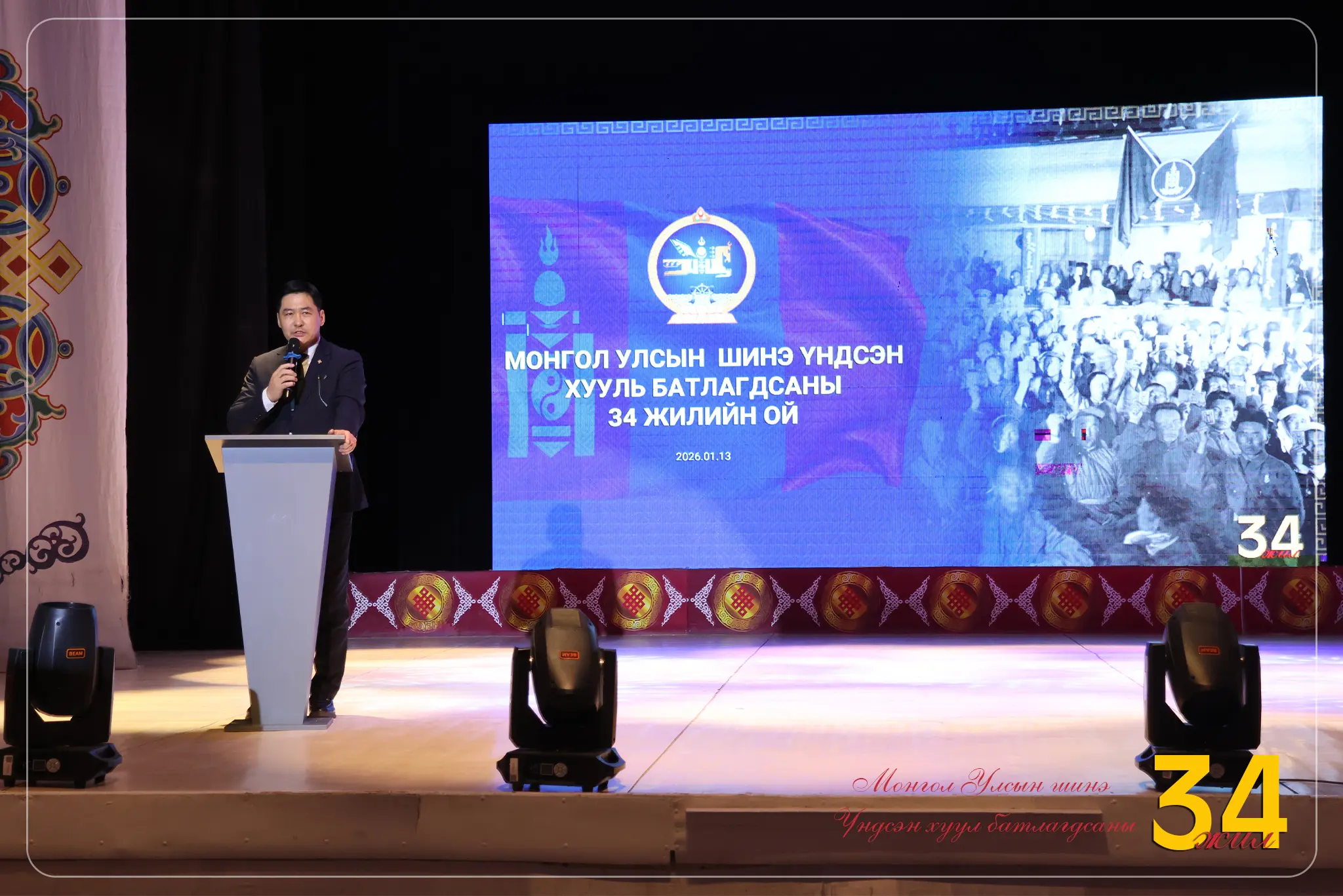МОНГОЛ УЛСЫН ШИНЭ ҮНДСЭН ХУУЛЬ БАТЛАГДСАНЫ 34 ЖИЛИЙН ОЙ ТОХИОЖ БАЙНА