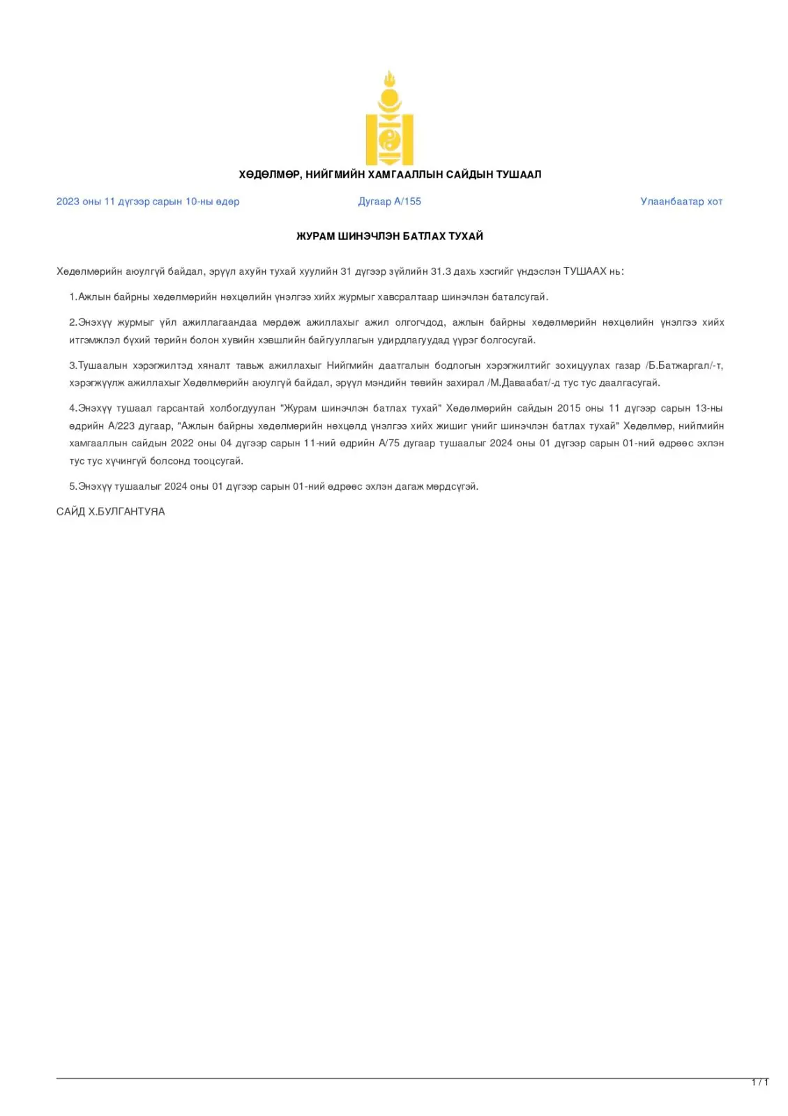АЖЛЫН БАЙРНЫ ХӨДӨЛМӨРИЙН НӨХЦӨЛИЙН ҮНЭЛГЭЭ ХИЙХ ЖУРМЫГ ТАНИЛЦУУЛЖ БАЙНА