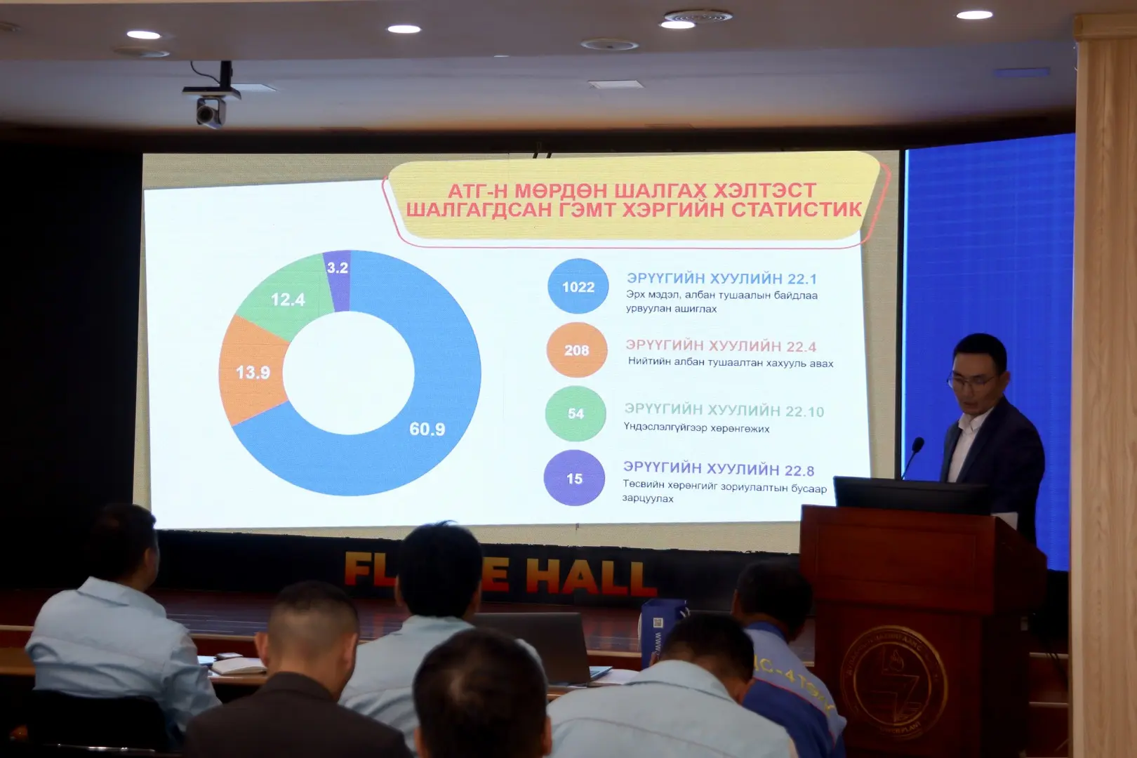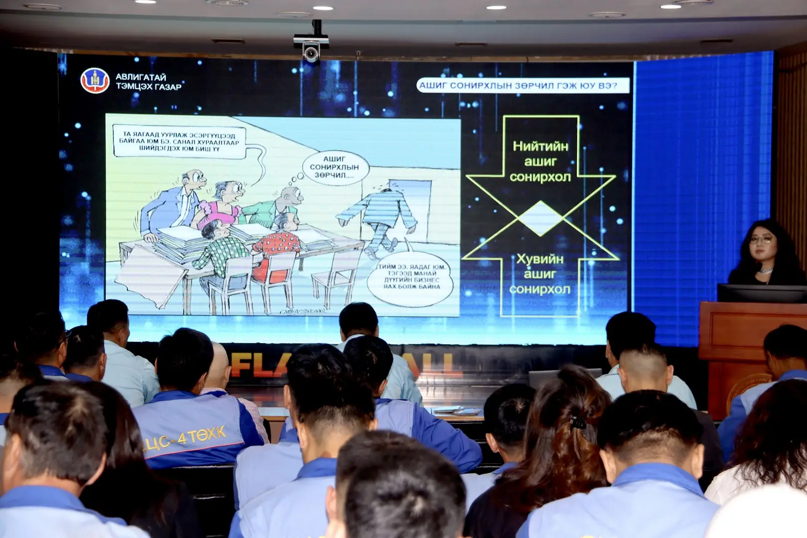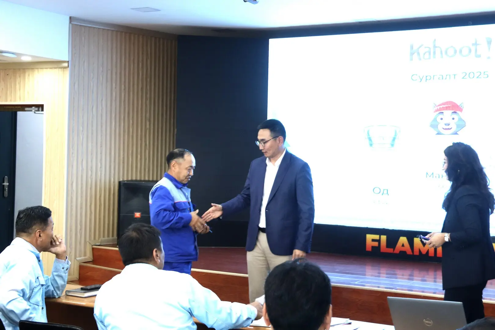 Монгол Улсын Ерөнхий сайдын 2025.06.18-ны өдрийн 01, 2025. 07.25-ны өдрийн 04 дүгээр албан даалгаврын хэрэгжилтийг хангах арга хэмжээний төлөвлөгөөний 2.4-т тусгагдсан “Төрийн албан хаагчийн ёс зүйн тухай хууль, Авлигын эсрэг хууль, Нийтийн албанд нийтийн болон хувийн ашиг сонирхлын зөрчлөөс урьдчилан сэргийлэх тухай хуулийн талаарх холбогдох сургалт, соён гэгээрүүлэх ажлыг зохион байгуулах” чиглэлийн хүрээнд компанийн эрх бүхий албан тушаалтнууд, бүх нэгжийн дарга, ахлахууд, худалдан авах ажиллагаанд оролцдог А3-ын эрхтэй ИТА-ууд, гэрээ контракт хийдэг, бараа материал хүлээн авдаг, хянадаг, хадгалдаг ажилтан, албан тушаалтнууд, хараат бус гишүүдийг хамруулан АТГ-ын УССГХ-ийн ахлах ажилтан, ахлах комиссар Б.Тэрбиш, УССГХ-ийн ажилтан, комиссар У.Номин-Эрдэнэ нар Төрийн албаны ил тод нээлттэй байдал, холбогдох хуулийн хэрэгжилт, шинэчлэлт, бодит кейсээр жишээ аван ойлгомжтой, сонирхолтой, мэргэжлийн ойлголтыг өгсөн сургалтыг АТГ-ын Урьдчилан сэргийлэх, соён гэгээрүүлэх хэлтсээс баталсан хөтөлбөрийн дагуу зохион байгуулав. Сургалтын төгсгөлд сургалтаас олж авсан мэдлэгээ баталгаажуулах хөгжөөнт тоглоомын арга нь сонирхолтой байсан хийгээд үр дүн нь оролцогчдын нүдэн дээр ил тод нээлттэй байсан нь сургалтын мөн чанар, ач холбогдлыг илтгэж байв. Цахилгаан цехийн ашиглалтын инженер С.Энхманлай, ТЭЗХ-ийн тоноглолын төсөв хариуцсан мэргэжилтэн Д.Одноо, Хяналтын хэлтсийн ХАБЭА хяналтын инженер Э.Гүржав нар хамгийн өндөр оноо аван мэдлэгээ баталгаажуулсан оролцогч болж, сургалтад оролцогчдоо манлайлав.