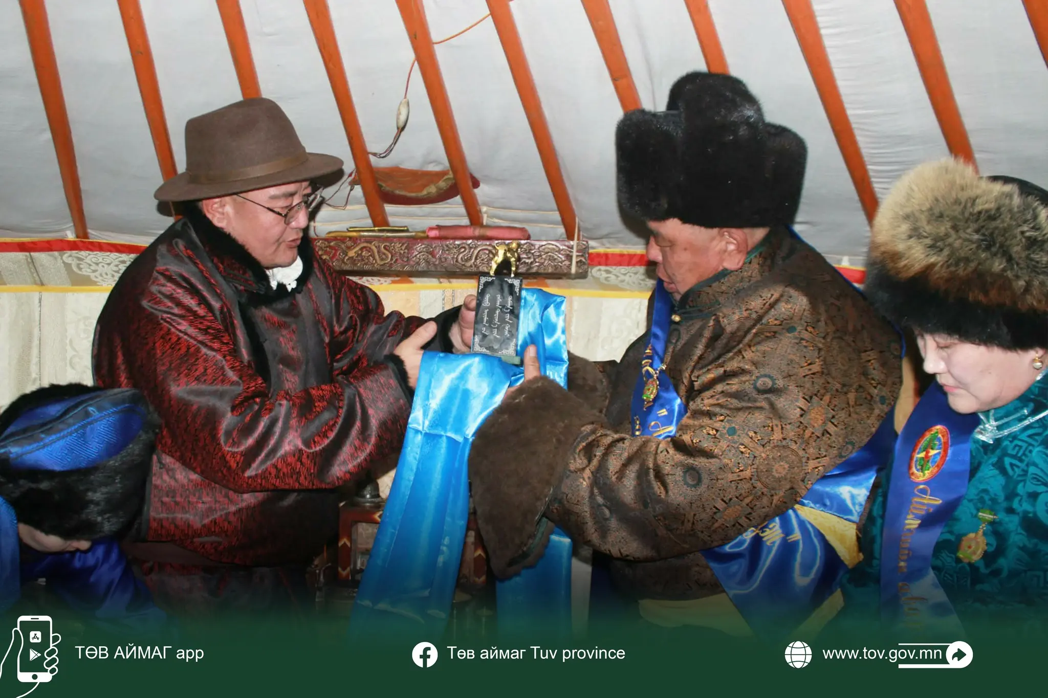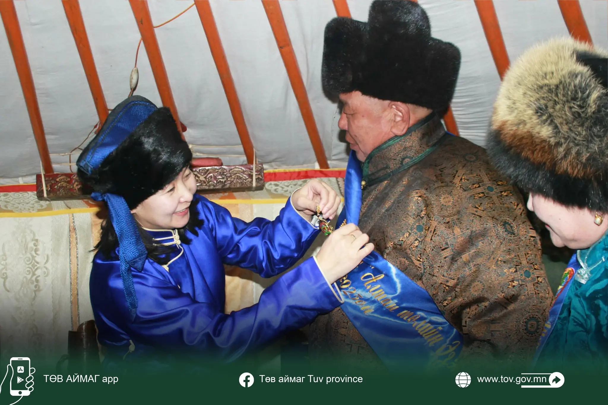 Аймгийн ЗДТГ-ын БОНХОБТХ-ийн дарга Э.Уянга, ЭМГ-ын дарга Ч.Алтантуул, Алтанбулаг сумын Засаг дарга Д.Батсуурь нар "Сүрээр дарагч" хэмээх гал морин жилийн Сар шинийн баярын босгон дээр аймгийн “Алтан ишигний эзэн”-ээр тодорсон Алтанбулаг сумын малчин Ц.Батбилэгийн гэр бүлд шагналыг гардуулж өглөө.