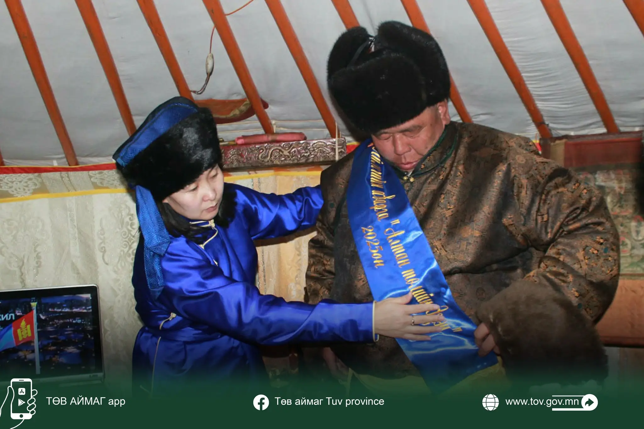 “Алтан ишигний эзэн”-ээр тодорсон Алтанбулаг сумын малчин Ц.Батбилэгийн гэр бүлд шагналыг гардуулж өглөө.