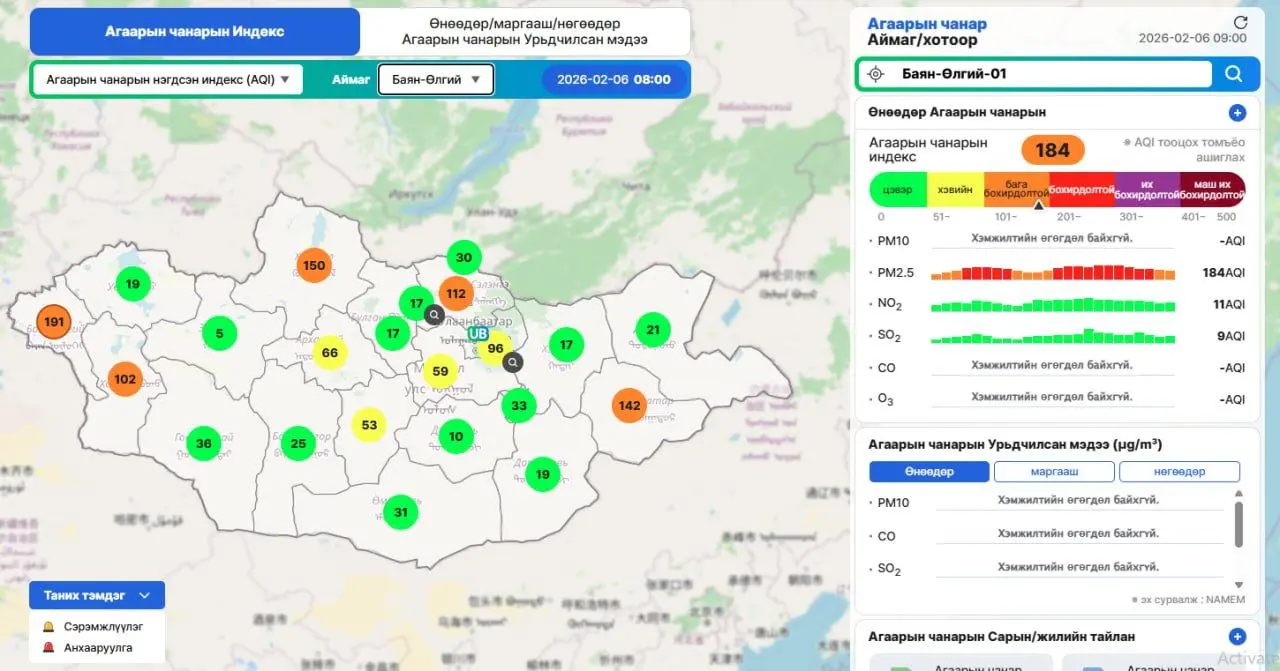 2026.02.06-ны өдрийн 08 цагийн байдлаар "Бага бохирдолтой" түвшинд байна.