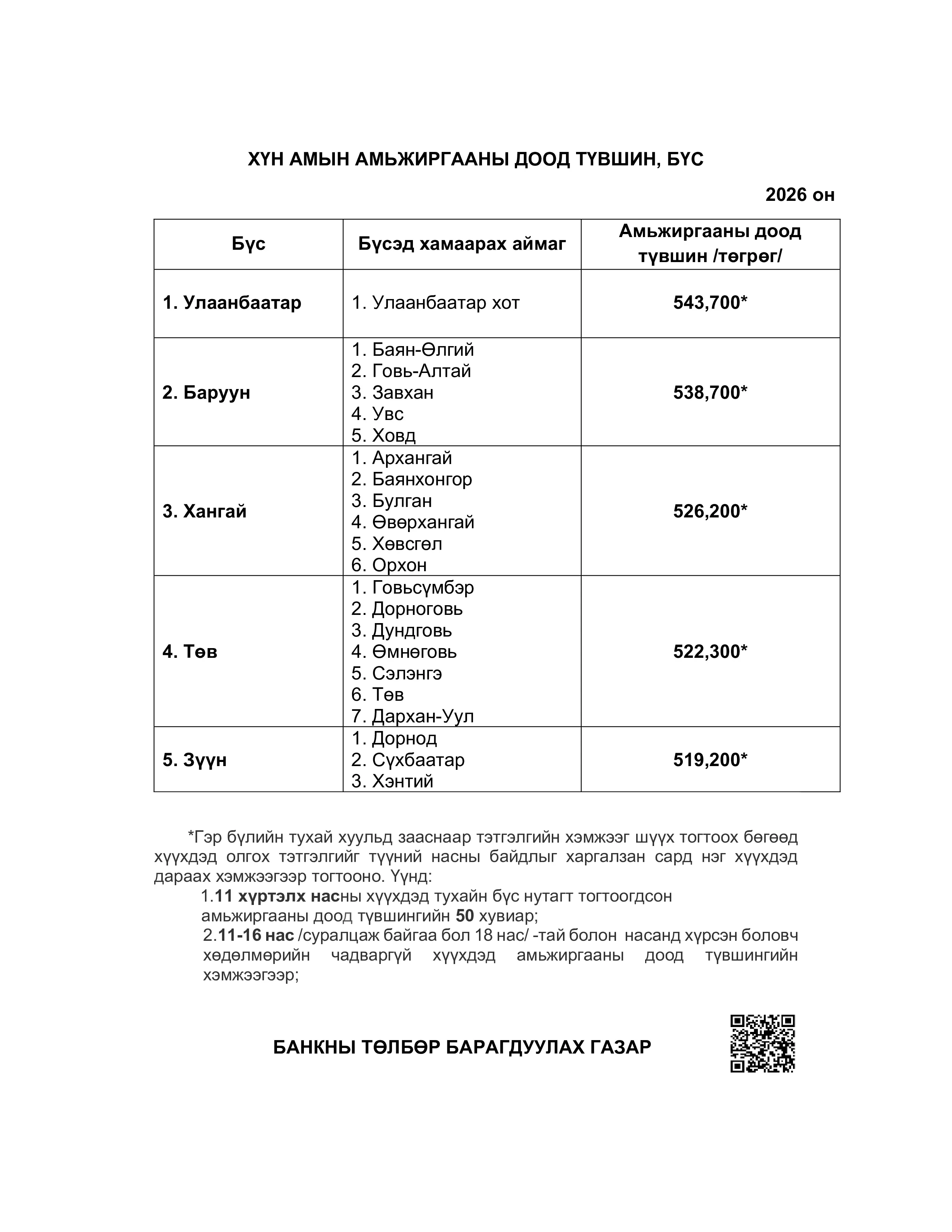 ХҮН АМЫН АМЬЖИРГААНЫ 2026 ОНЫ ДООД ТҮВШИНГ ТОГТООЖЭЭ