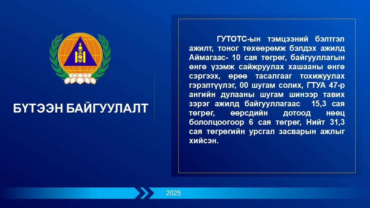 © 2025 он. Бүх эрх хуулиар хамгаалагдсан. МОНГОЛ УЛСЫН ЗАСГИЙН ГАЗАР