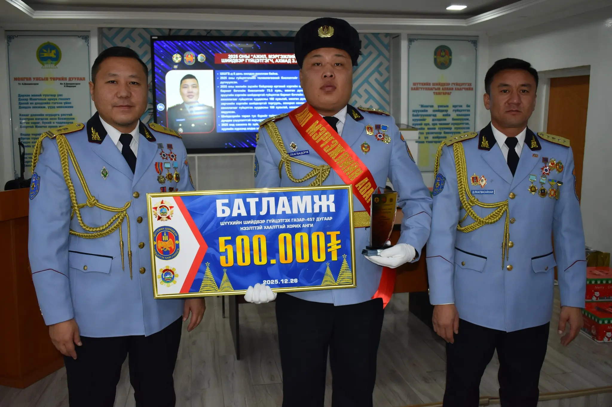 “Хөдөлмөрийн аварга алба хаагч”-аар холбоочин, ахлагч Г.Даваабал, “Ажил, мэргэжлийн аварга алба хаагч"-аар шийдвэр гүйцэтгэгч, ахмад З.Лхагвадорж, “Шилдэг офицер”-оор ерөнхий жижүүр, хошууч П.Цэнд-Аюуш, “Шилдэг ахлагч”-аар хамгаалалтын ажилтан, ахлах ахлагч Л.Сумъяа нар тус тус шалгарлаа.