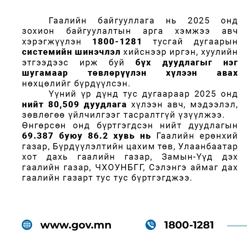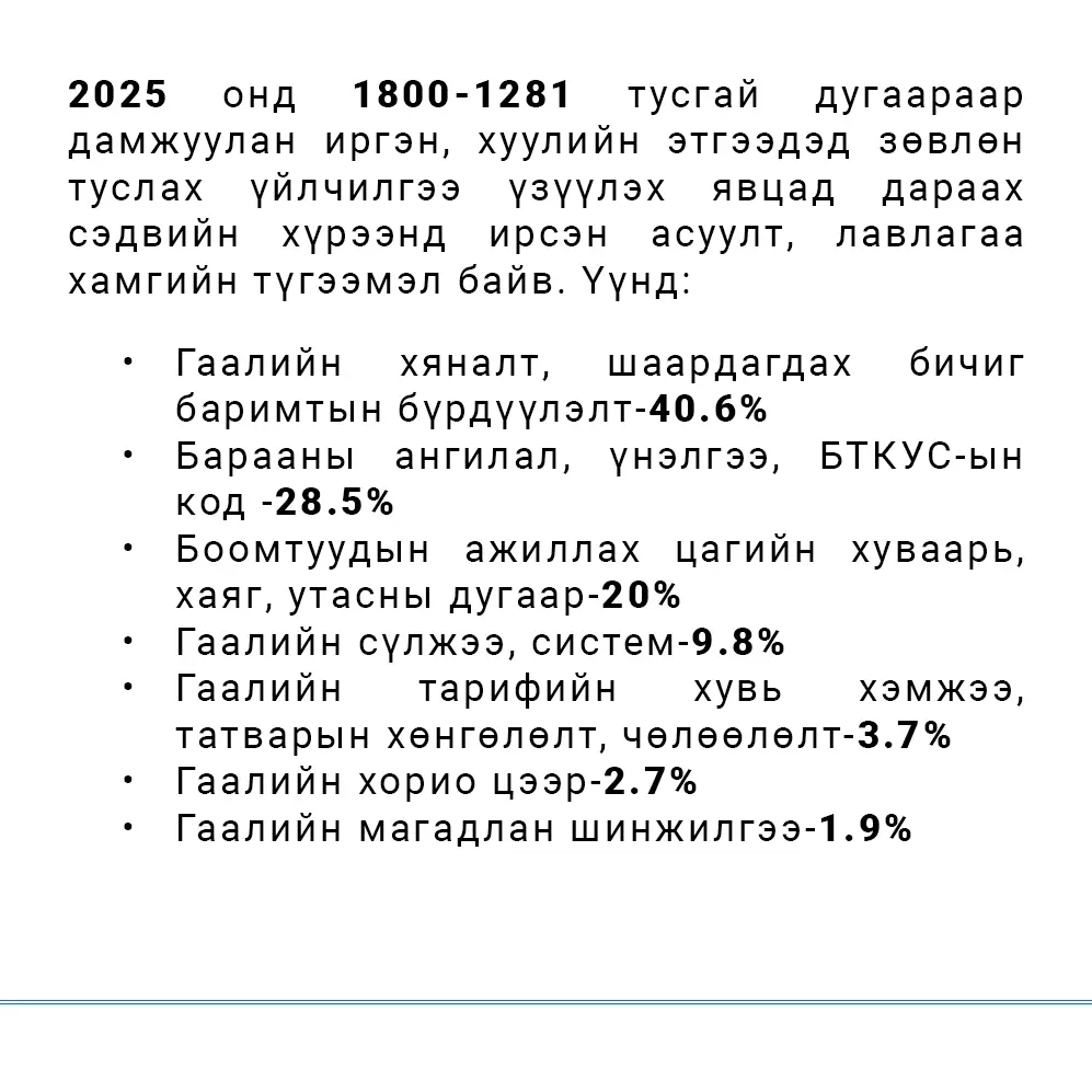 ГААЛИЙН ЛАВЛАХ УТАС 1️⃣8️⃣0️⃣0️⃣-1️⃣2️⃣8️⃣1️⃣