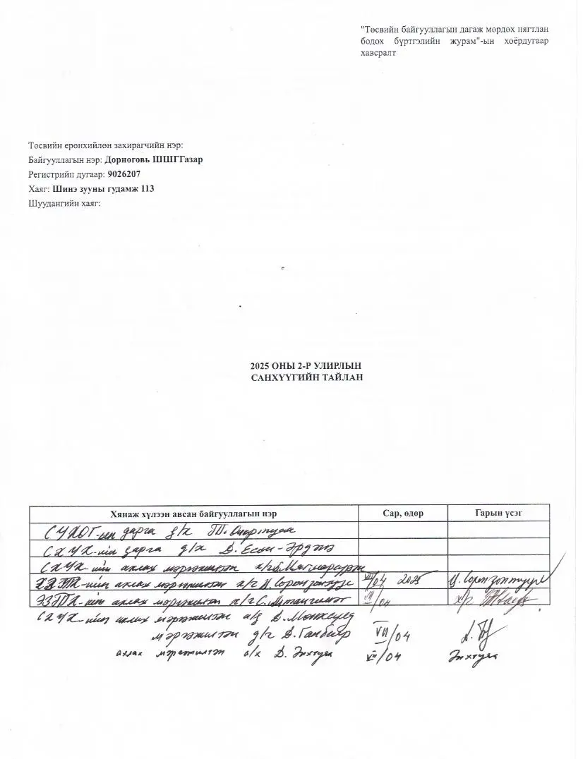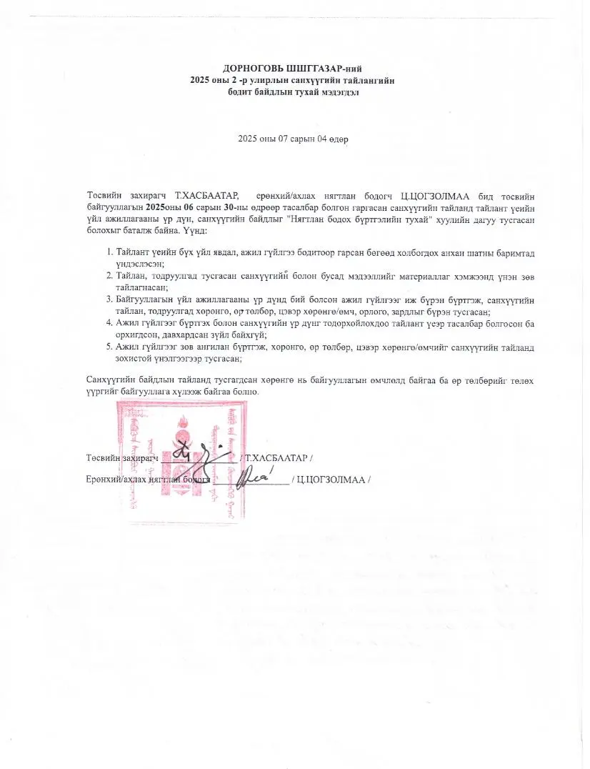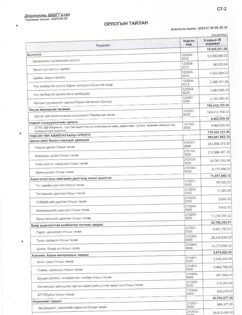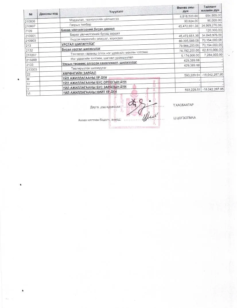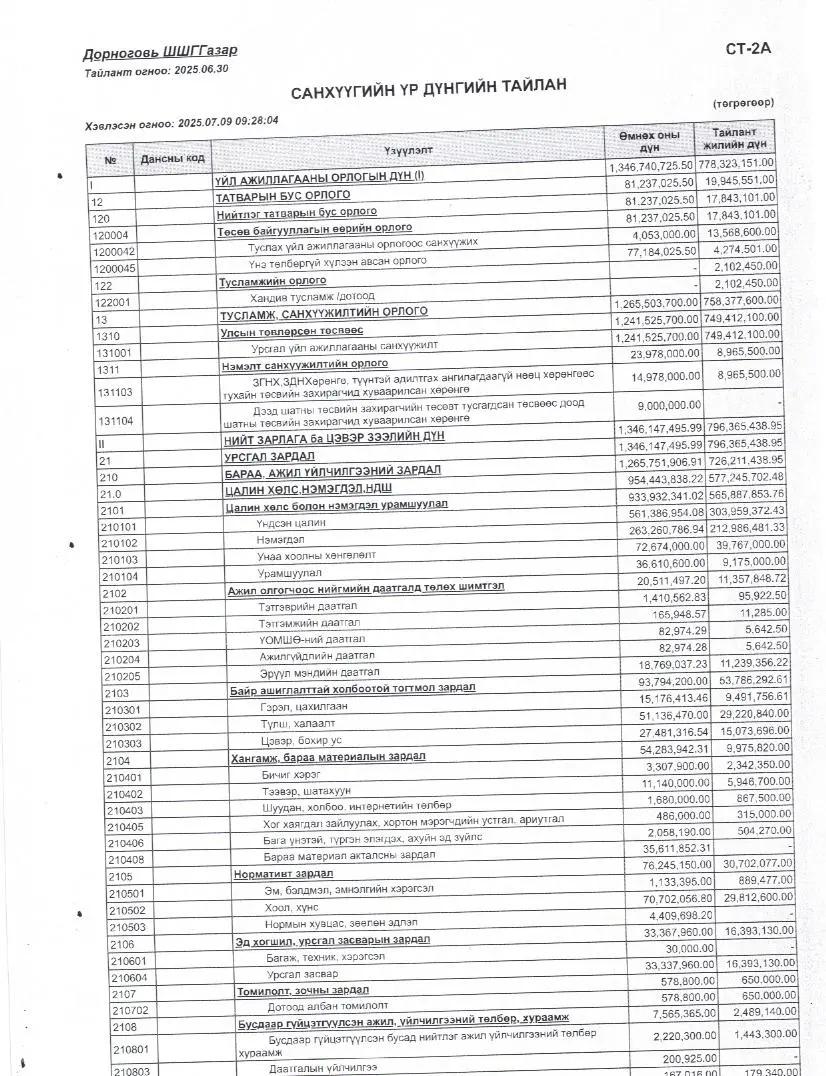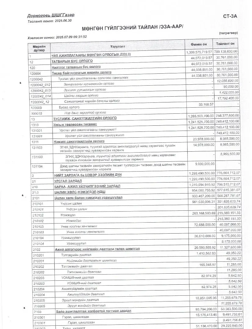Төсвийн гүйцэтгэлийн биелэлт болон хагас, бүтэн жилийн санхүүгийн тайлан