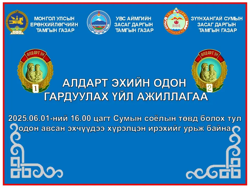 ТУЛГАР ТӨРИЙН 2234, ИХ МОНГОЛ УЛСЫН 819, АРДЫН ХУВЬСГАЛЫН 104 ЖИЛ, ЗҮҮНХАНГАЙ СУМ БАЙГУУЛАГДСАНЫ 101 ЖИЛИЙН ОЙН БАЯР НААДМЫН ХӨТӨЛБӨР