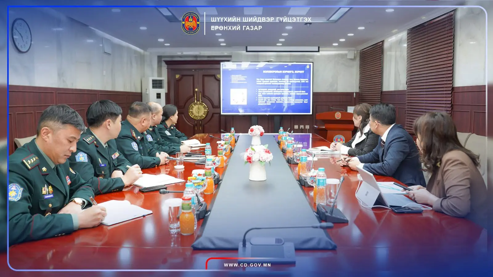 Уулзалтад Шүүхийн шийдвэр гүйцэтгэх ерөнхий газрын дарга, хурандаа Б.Нандинболор, Боловсролын ерөнхий газрын дарга Т.Ням-Очир болон холбогдох албан тушаалтнууд оролцлоо.