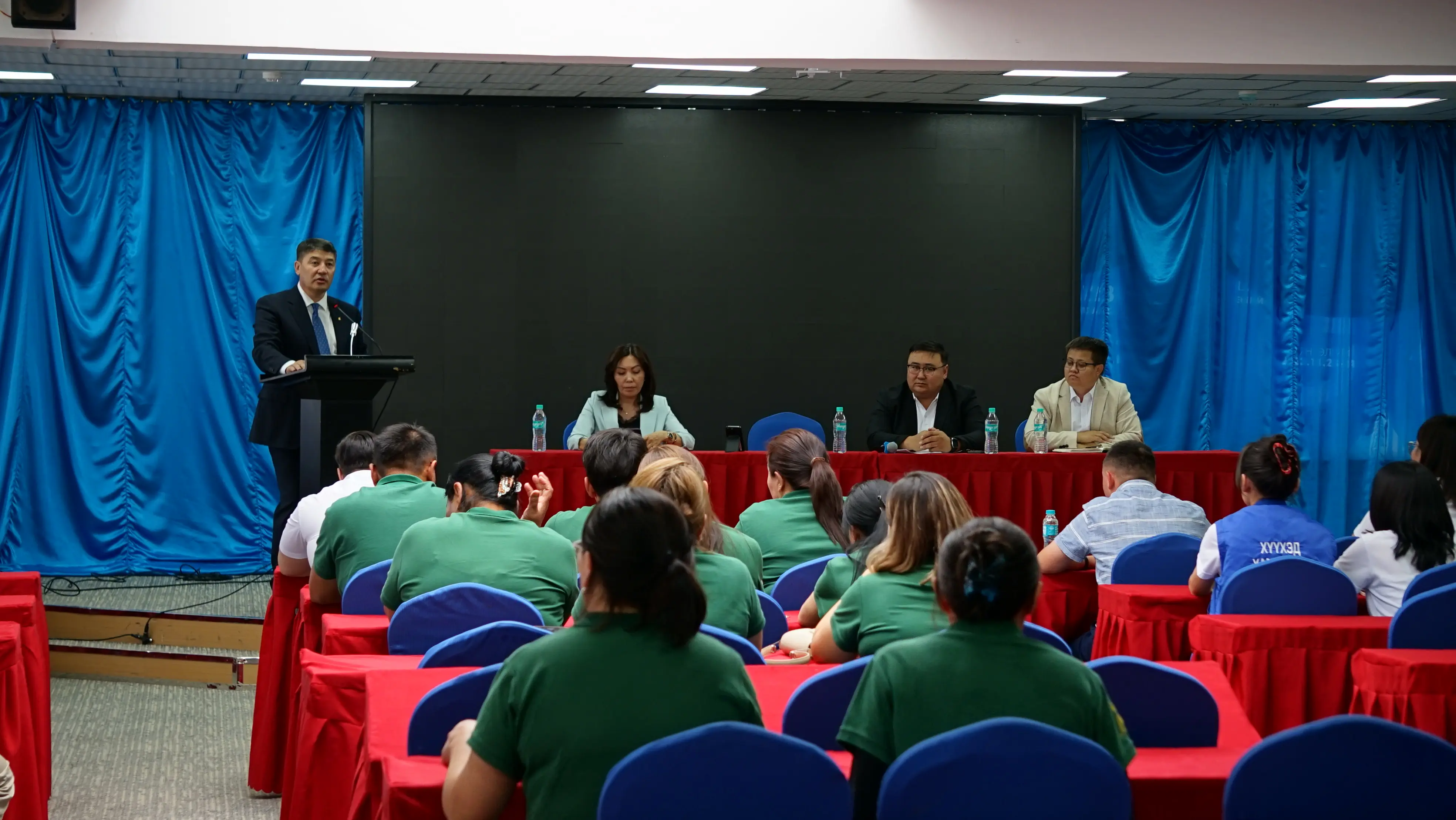 Уулзалтад тус газрын дарга Х.Бауыржан, Нийгмийн даатгалын газрын дарга М.Армия, Хөдөлмөр, халамжийн үйлчилгээний газрын дарга А.Галия болон салбар байгууллагын албан хаагч, ажилтнуудын төлөөлөл, мэргэжилтэн оролцож, харилцан санал солилцов. Уулзалтын эхэнд сайд Т.Аубакир салбарын бодлого, үйл ажиллагаа, өнөөгийн нөхцөл байдал, хэрэгжих хөтөлбөр, үйл ажиллагааны талаар танилцуулсан юм. Үүний дараа салбарын үйл ажиллагаанд тулгамдаж буй асуудал, салбарын бодлого, үйл ажиллагаанд тусган хэрэгжүүлэх ажлын талаар албан хаагч нарын санал хүсэлтийг сонслоо. Албан хаагчдын гаргасан асуулт, саналд тодорхой хариулт өгсөн бөгөөд судалж, шийдвэрлэх шаардлагатай зарим асуудалд онцгой анхааран тусган хэрэгжүүлэн ажиллахаа илэрхийллээ. Уулзалтын төгсгөлд шинээр томилогдсон Хүүхэд, гэр бүлийн нийгмийн ажилтнуудын ажил үүргээ үр дүнтэй гүйцэтгэх нөхцөлийг бүрдүүлэх, нийгмийн баталгааг хангах зорилгоор зөөврийн компьютер болон шаардлагатай тоног төхөөрөмжийг гардуулан өглөө.