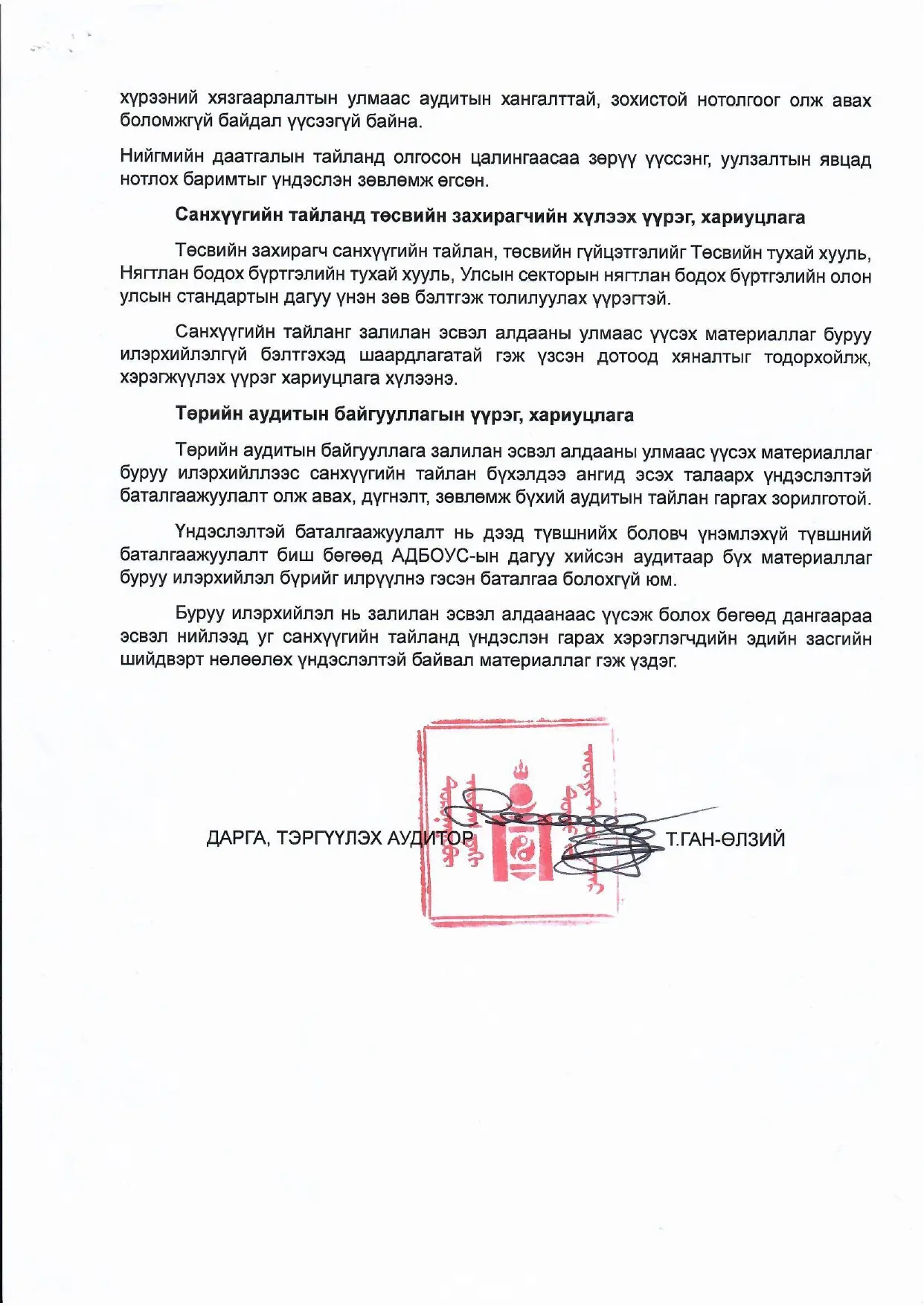 Санхүүгийн тайланд хийсэн аудитын дүгнэлт