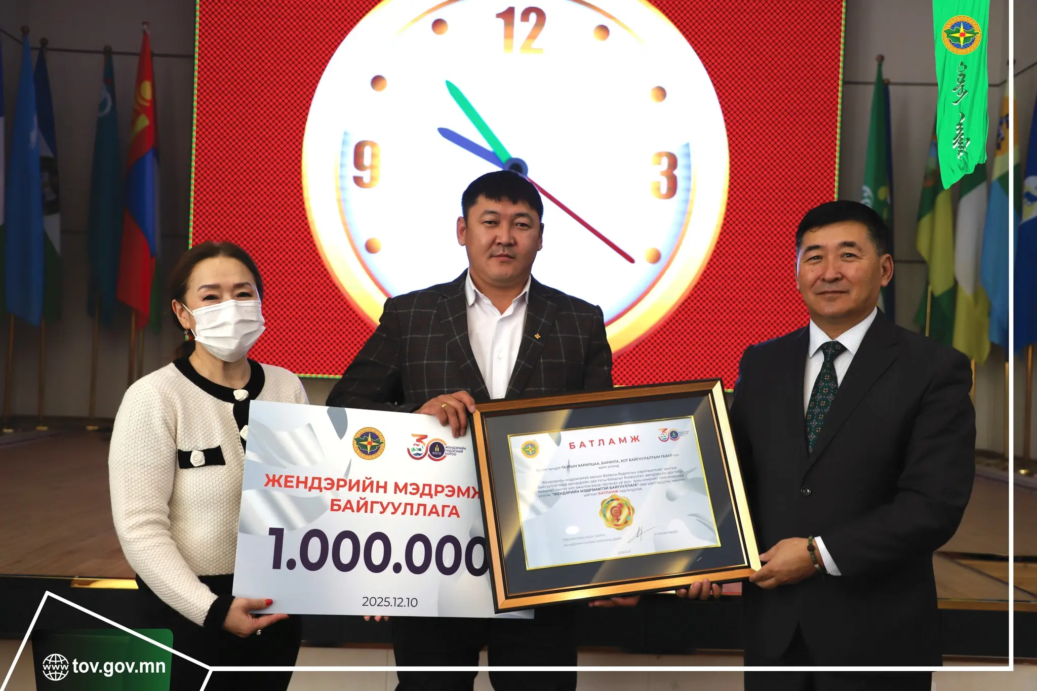 Аймгийн Засаг даргын 2024 оны А/679 захирамжаар батлагдсан “Жендэрийн мэдрэмжтэй сум, байгууллага” шалгаруулах болзлын дагуу орон нутаг болон байгууллагадаа жендэрийн эрх тэгш байдлыг хангах үйл ажиллагааг бэхжүүлэн ажиллаж буй сум, байгууллагуудыг шалгаруулж, урамшууллаа. "ЖЕНДЭРИЙН МЭДРЭМЖТЭЙ СУМ"-аар: