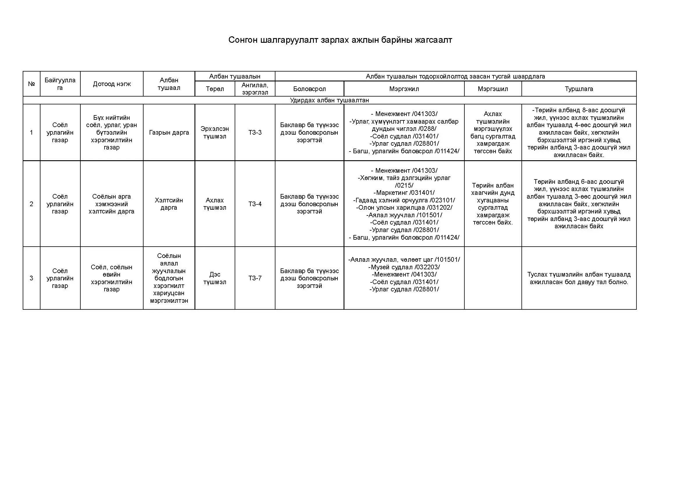 • Зарлагдсан албан тушаалтай адил төрөл болон адил ангилалд ажилладаг байх;