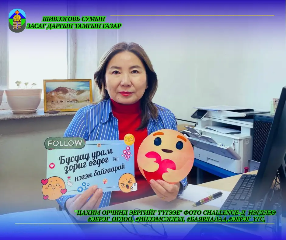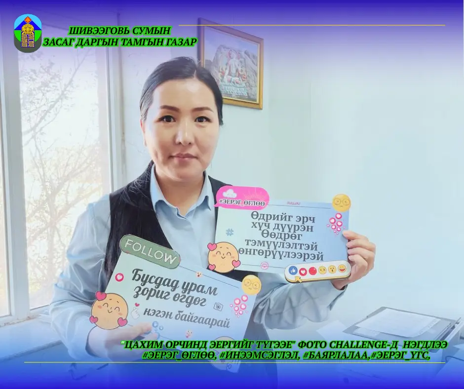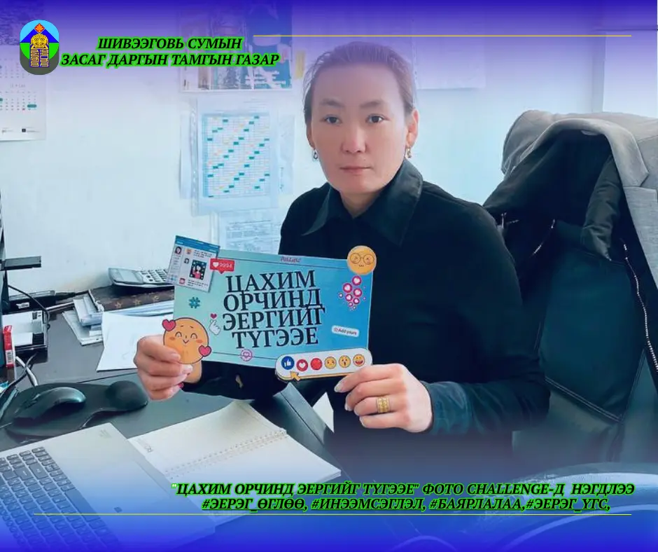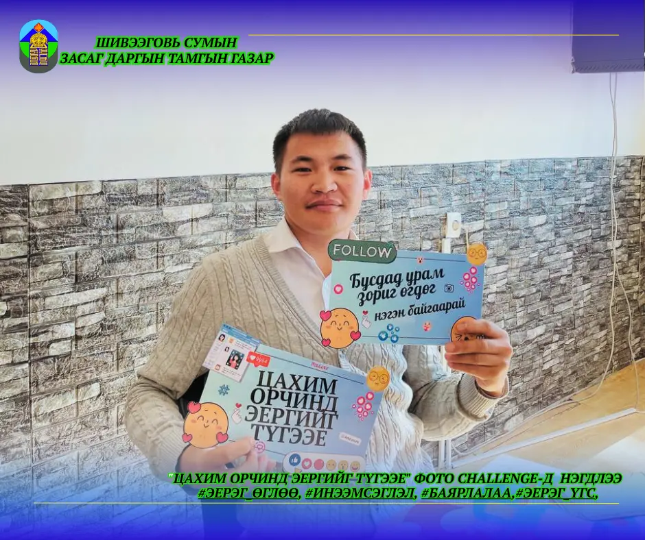 📸PHOTO-CHALLENGE-д дуудагдсан албан байгууллага болон хувь хүн та ⬇️⬇️⬇️ #ЭЕРЭГ_ӨГЛӨӨ, #ИНЭЭМСЭГЛЭЛ, #БАЯРЛАЛАА, #ЭЕРЭГ_ҮГС, #ТУСАЛЖ_ЧАДНА тус 5-н сэдвээс 1-ийг сонгож зургаа оруулан ЦАХИМ ОРЧИНД ЭЕРГИЙГ ТҮГЭЭГЭЭРЭЙ.