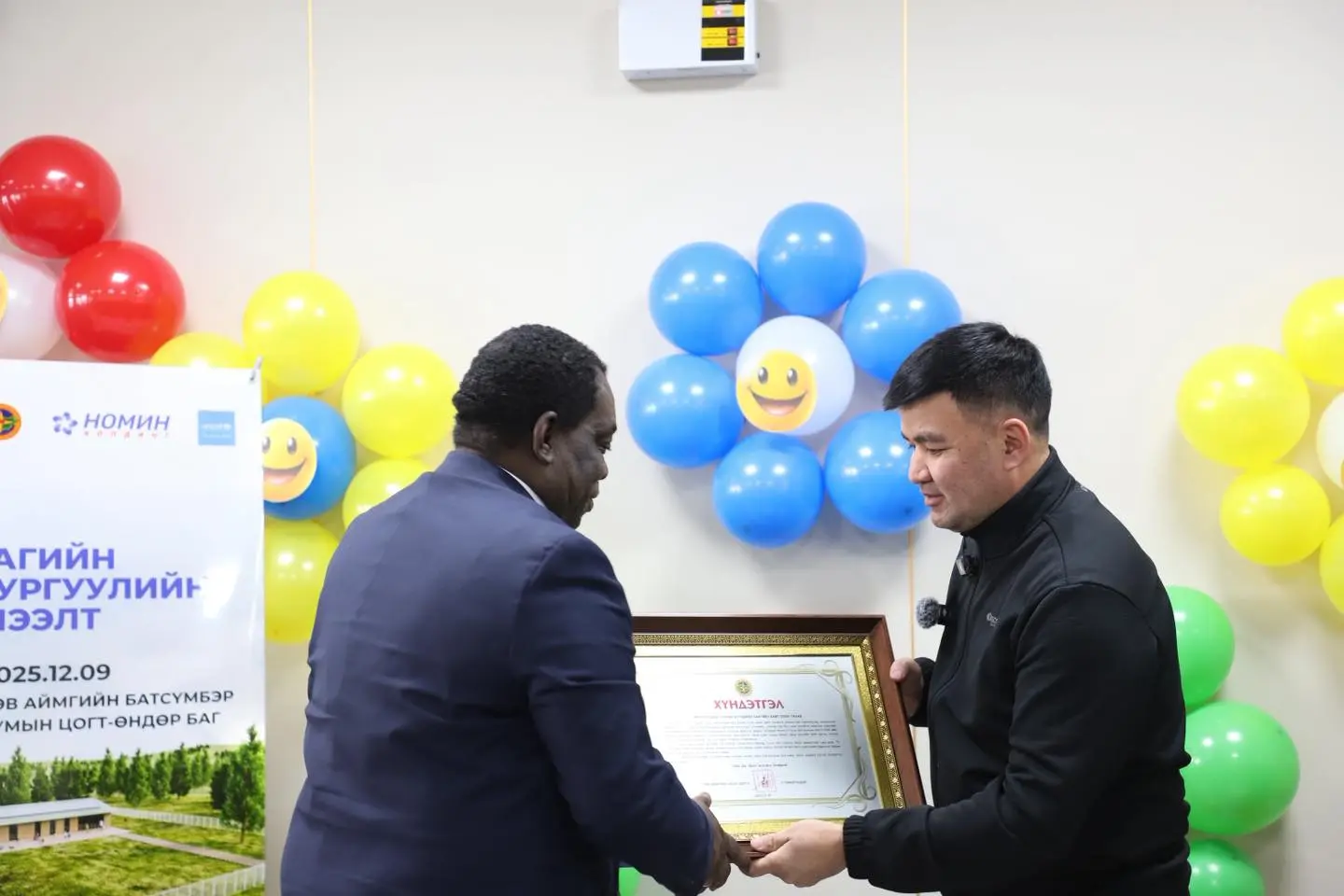 Аймгийн Засаг дарга Л.Төмөрчөдөр, НҮБ-ын Хүүхдийн Сангийн Суурин төлөөлөгч Эваристе Коуасси-Комлантай байгуулсан хамтын ажиллагааны гэрээний хүрээнд Батсүмбэр сумын Цогт-Өндөр багт "БАГИЙН БАГА СУРГУУЛЬ" төслийг Номин холдинг ХХК-ийн хөрөнгө оруулалтаар шинээр барьж ашиглалтад хүлээн авлаа. Ингэснээр тус багийн хүүхдүүд амьдарч буй газраасаа чанартай боловсролыг эзэмших боломж бүрдэж байна. Тус сургууль нь 75 хүүхдийн хүчин чадалтай, Номын сан, амрах болон тоглоомын талбай, 40кВт-ын нарны эрчим хүчний эх үүсвэр, цнвэр усны гүний худаг, цэвэрлэх байгууламжийг цогцоор нь шийдснээрээ онцлогтой. Энэхүү төсөл Батүсүмбэр сумын Үдлэг багт мөн хэрэгжиж байгаа юм.