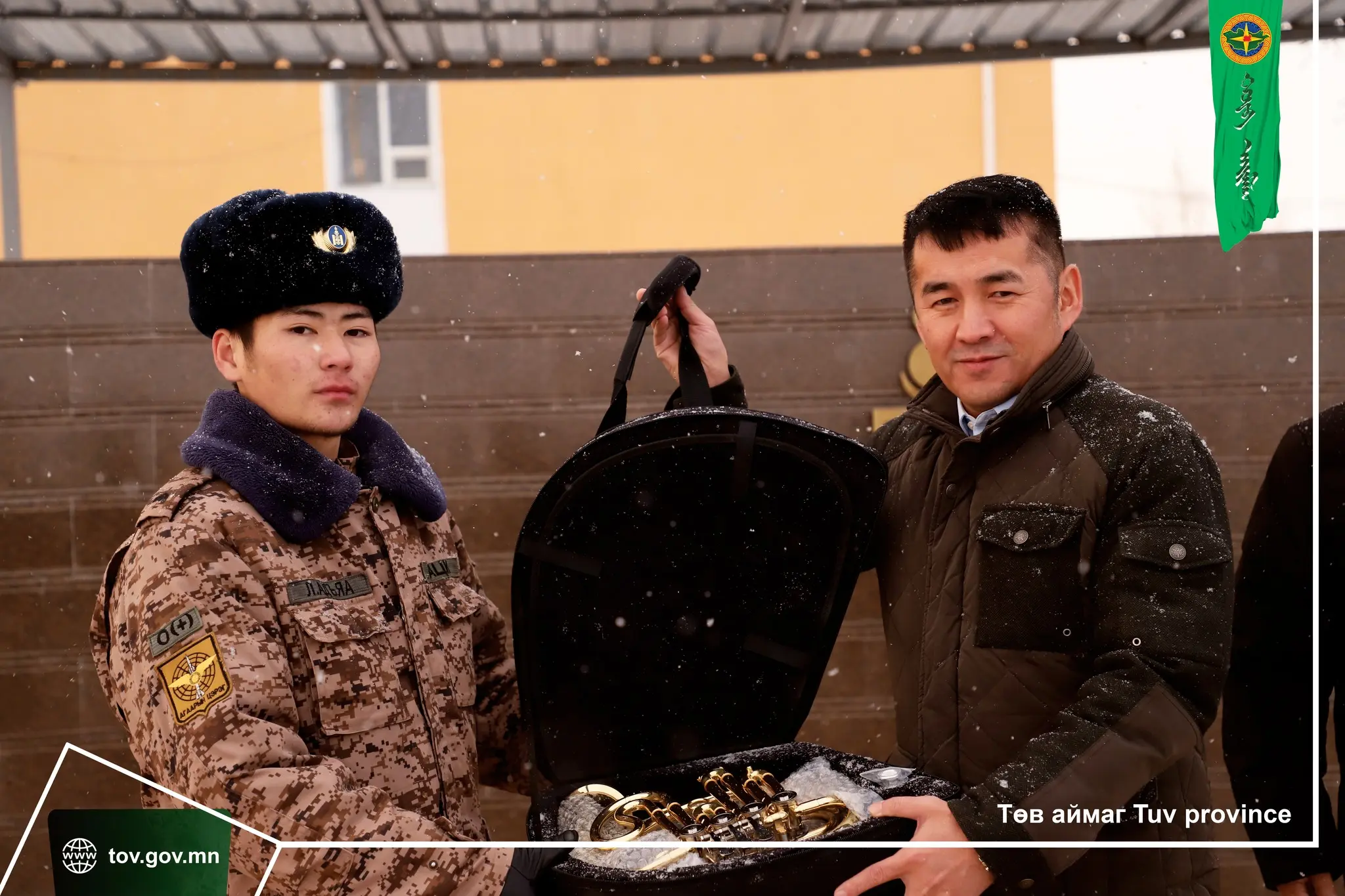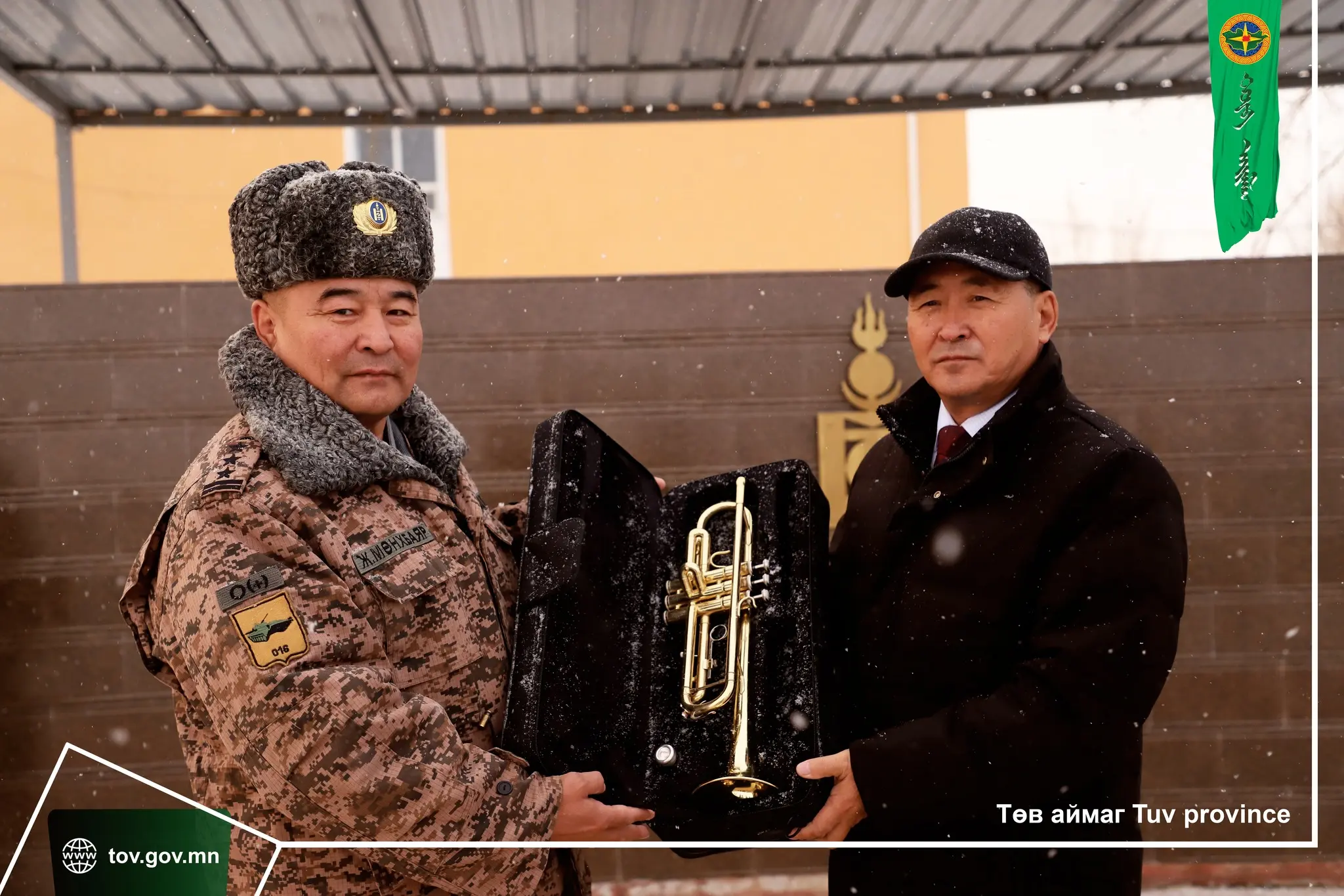 Батлан хамгаалахын сайд аймгийн Засаг даргатай байгуулсан гэрээний хэрэгжилтийг хангах, аймаг, орон нутагт үйл ажиллагаа явуулж байгаа Зэвсэгт хүчний нэгтгэл ангиудын үйл ажиллагааг дэмжих хүрээнд орон нутгийн хөрөнгө оруулалтаар Монгол Улсын маршал Х.Чойбалсангийн нэрэмжит Сүхбаатарын болон Байлдааны гавьяаны улаан тугийн одонт, Зэвсэгт хүчний 016 дугаар нэгтгэлд цэргийн үлээвэр хөгжмийн иж бүрэн зэмсгийг гардуулан өглөө. Зэвсэгт хүчний 016 дугаар нэгтгэл нь эх орныхоо батлан хамгаалах чадавхыг бэхжүүлэхийн зэрэгцээ орон нутгийн хөгжил, нийгмийн амьдралд идэвхтэй оролцож иргэдийнхээ аюулгүй байдлыг хангахад хувь нэмрээ оруулсаар байгаа билээ. Шинэ хөгжмийн зэмсэг гардуулах үйл ажиллагааны үеэр 016 дугаар нэгтгэлийн захирагч, хурандаа Ж.Мөнхбаяр “Цэргийн хөгжим бол цэргийн сахилга, ёс суртахуун, эх оронч сэтгэлгээний бэлгэ тэмдэг юм. Зэмсэг бүрийн дуу авиа эх орны минь төлөө зүтгэж буй цэргүүдийн урам зориг, бахархлыг илэрхийлэх болно. Цэргийн хөгжим нь цэргийн алба хаагчдын урам зориг, эх оронч сэтгэл, нэгэн зорилготой байх мэдрэмжийг төрүүлдэг ач холбогдолтой бөгөөд энэхүү хөгжмийн зэмсгийг арчилж, бүтээлчээр ашиглан цэргийн албан хаагчдын соёл гэгээрэл, эх оронч хүмүүжлийг төлөвшүүлэхэд онцгой анхаарч ажиллах болно” гэлээ.