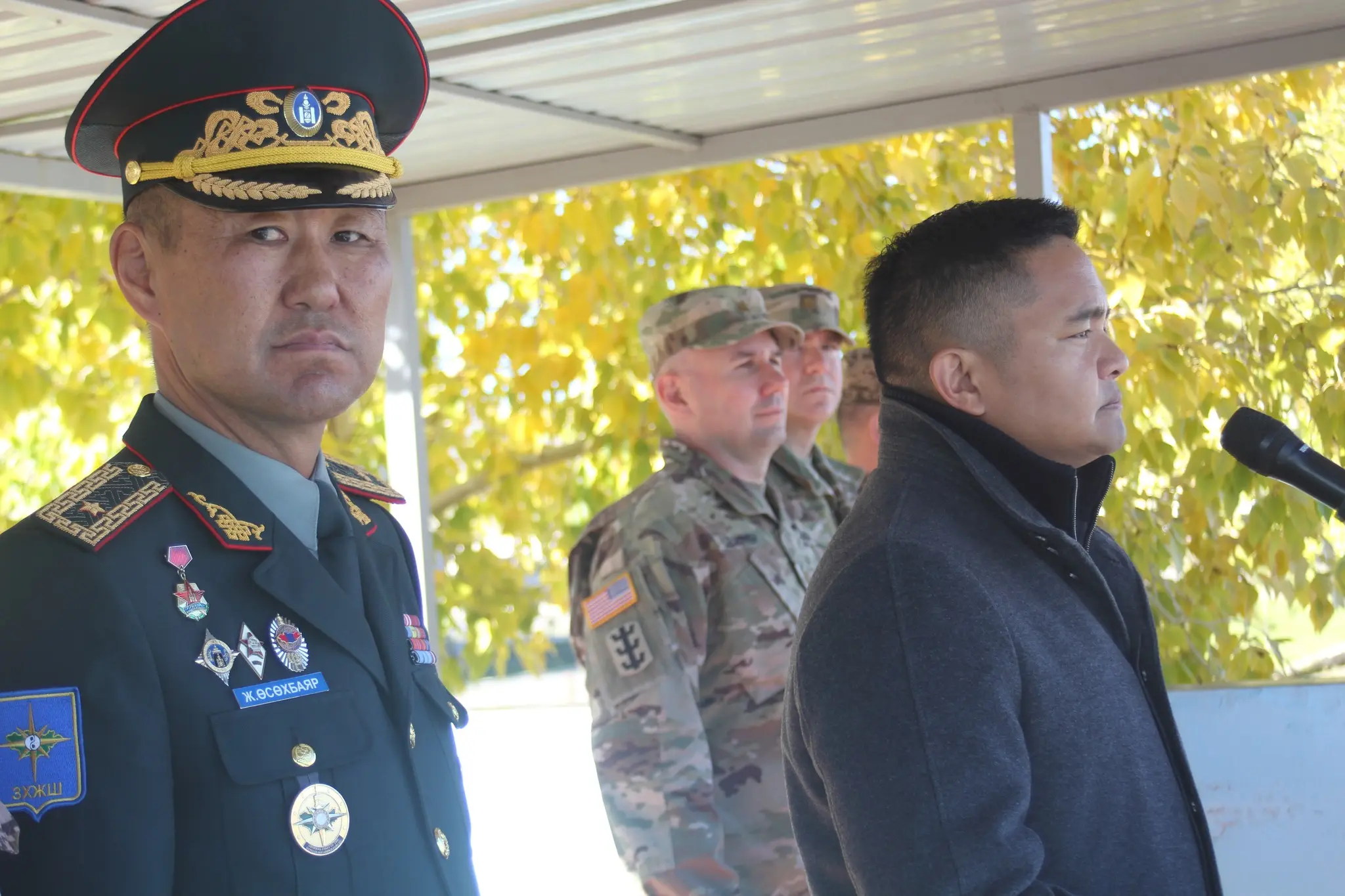 АНУ-аас Монгол Улсад суугаа Онц бөгөөд Бүрэн эрхт Элчин сайд Ричард Буанган “Өнөөдрийн хүндтэй үйл ажиллагаанд оролцож байгаадаа баяртай байна. Дэлхийн энх тайвныг хангах нийтлэг зорилгын төлөө эх орноосоо мордож буй та бүхнээр бахархаж байна. Монголын энхийг сахиулагчдын мэргэжлийн ур чадварыг дэлхий нийтээрээ хүлээн зөвшөөрсөн гэдгийг энэ өдөр дурдах ёстой” хэмээгээд ар тал амьдралаа дааж үлдэж буй гэр бүлд нь хамгийн сайхныг хүсэн ерөөе гэв. Мөн тэрээр цагийн байдлын амаргүй эрсдэлтэй газар оронд эх орон, элгэн саднаасаа хол бүтэн нэг жилийн хугацаанд үүрэг гүйцэтгэнэ гэдэг цэргийн алба хаагч бүрээс, гэр бүл бүрээс итгэл үнэмшил, эр зориг, эх оронч сэтгэл шаардсан шийдвэр байдгийг дурдлаа.