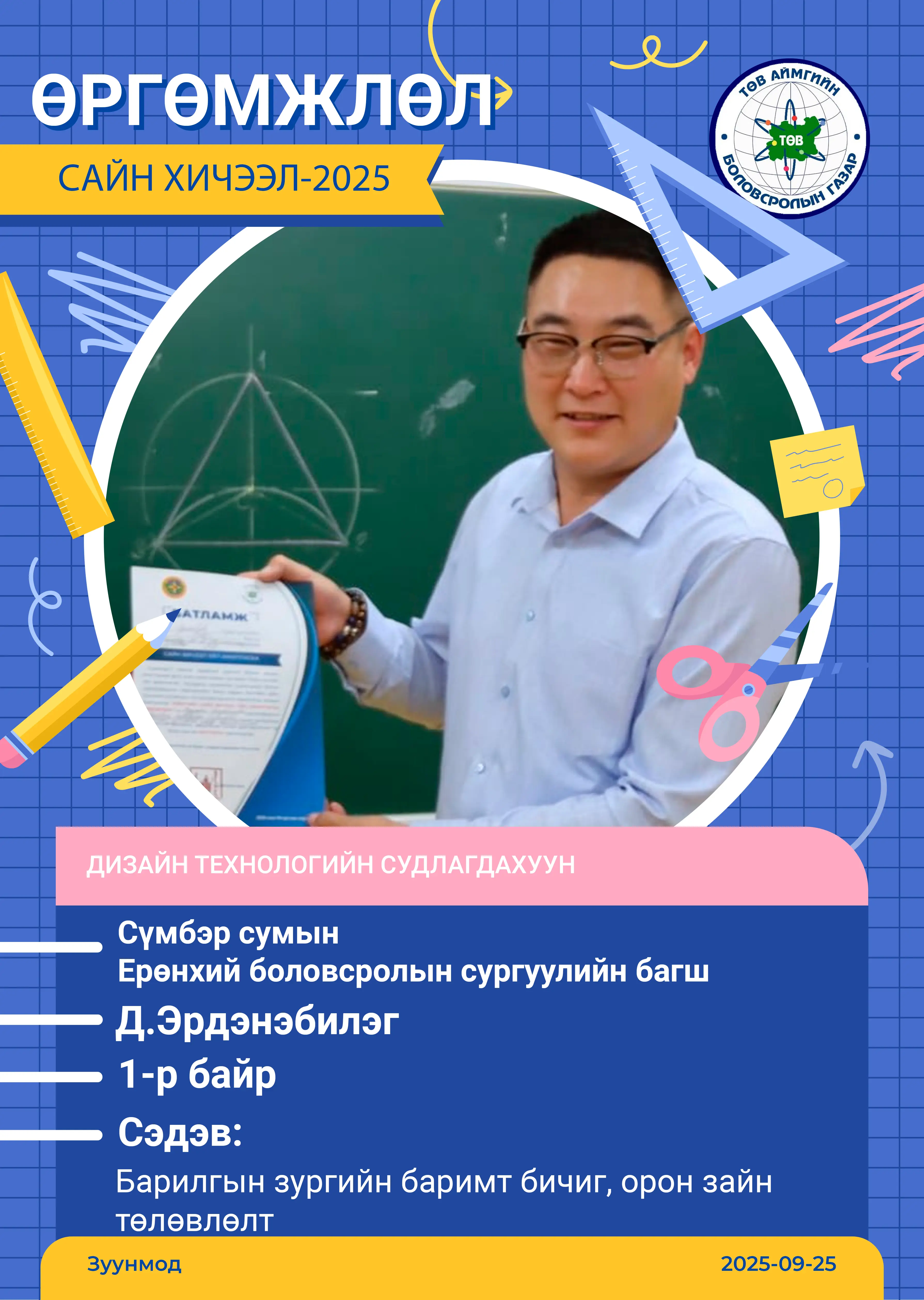 🥇Сүмбэр сумын сургуулийн багш Д.Эрдэнэбилэг