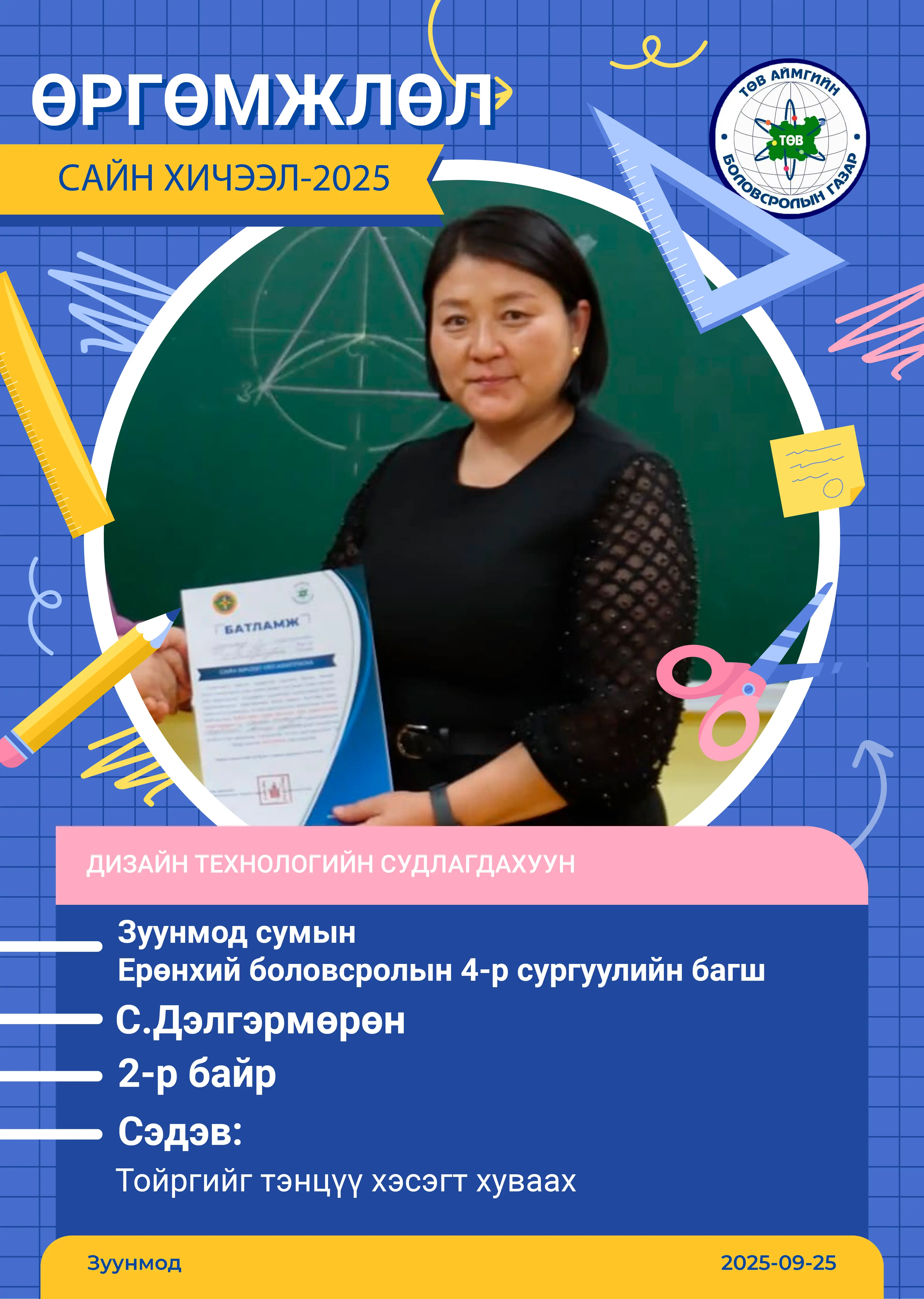 🥈Зуунмод сумын 4-р сургуулийн багш С.Дэлгэрмөрөн