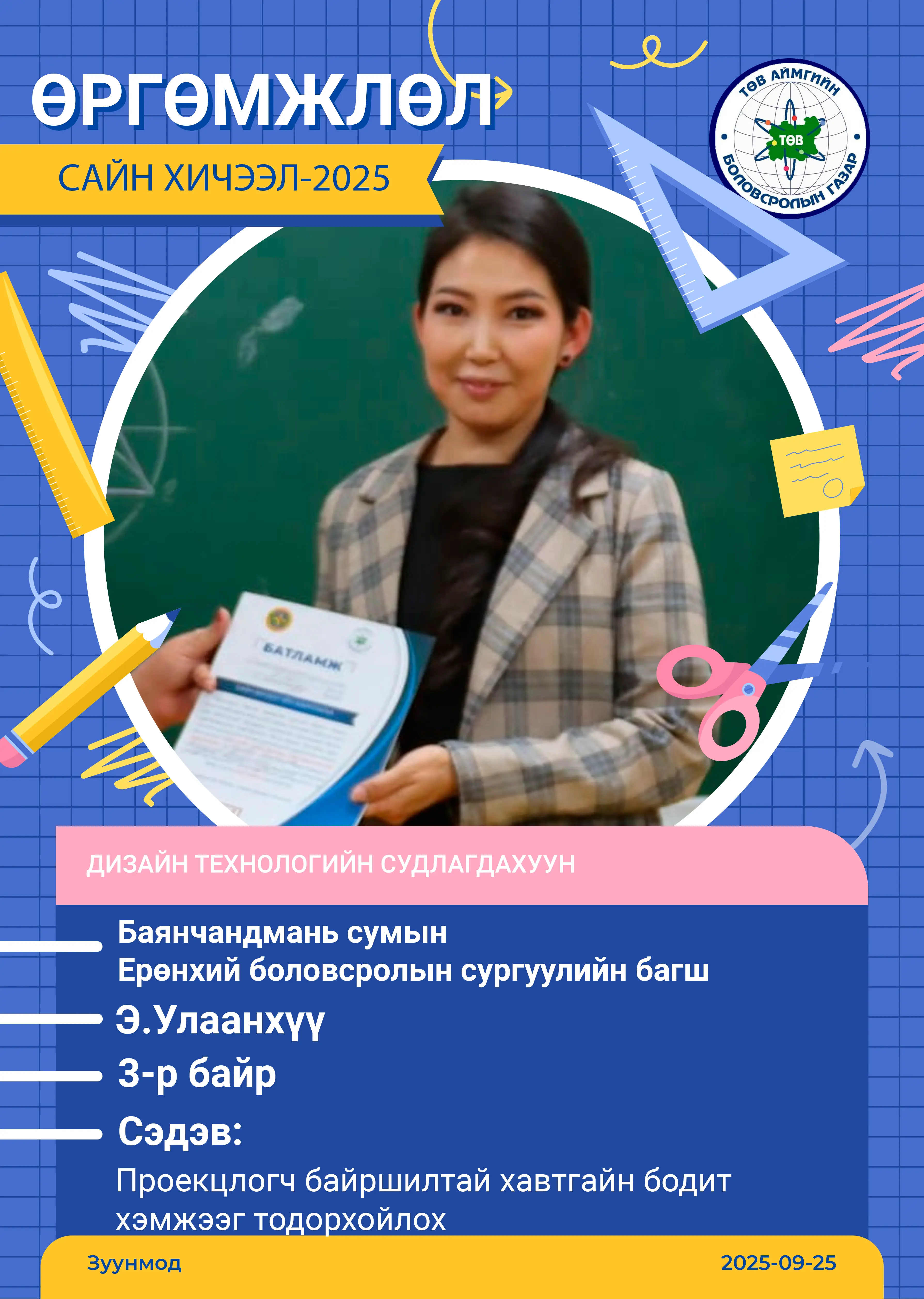 Дизайн, технологийн судлагдахууны Сайн хичээл үйл ажиллагаанд амжилттай оролцож шагналт байранд шалгарсан багш нар: