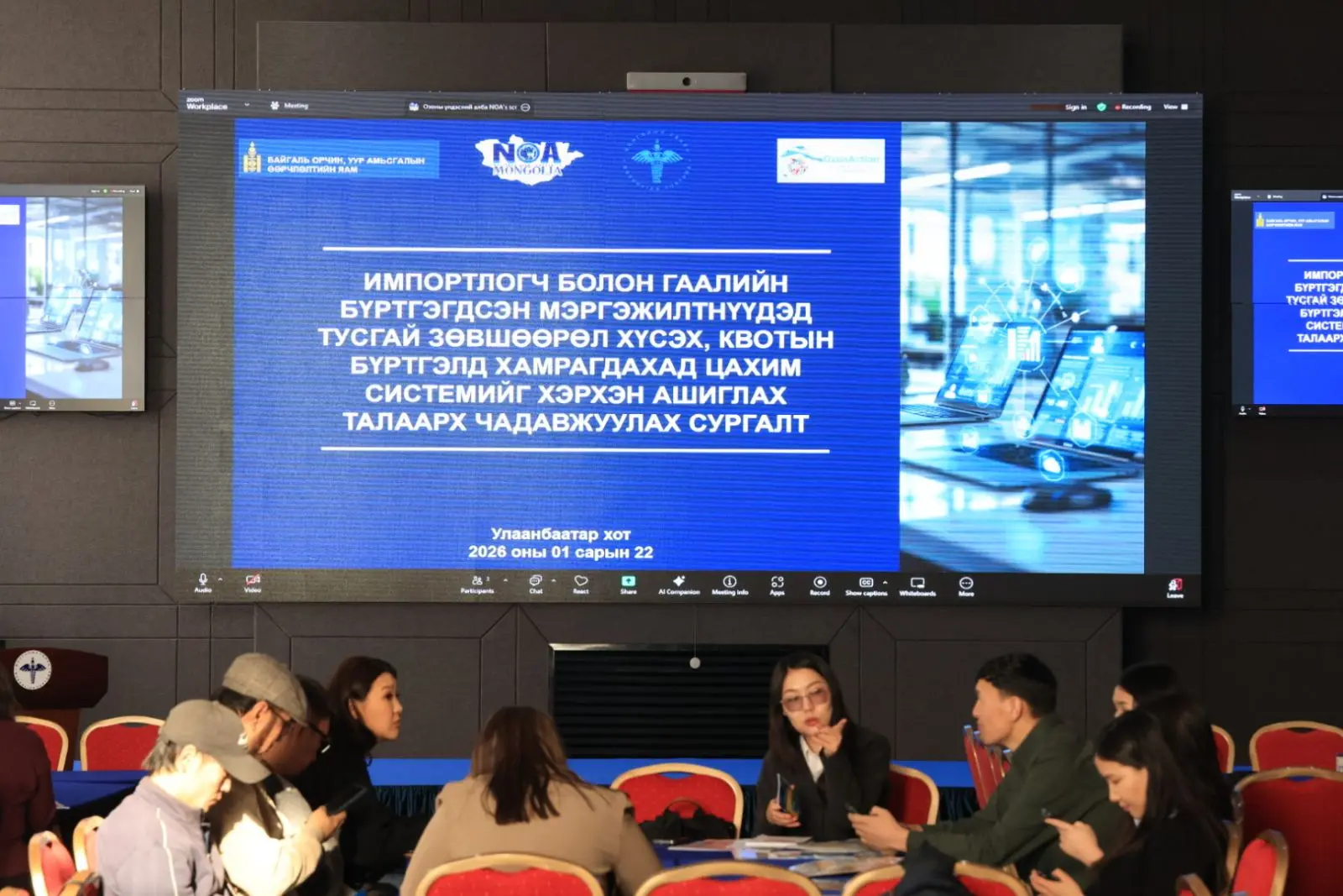 🔷 Уг сургалтад озон задалдаг бодис болон орлуулах бодис, галын унтраагуур импортлогчид, тусгай зөвшөөрөл хариуцсан итгэмжлэгдсэн төлөөлөгчид, барилгын дулаалгын хөөсөнцөр үйлдвэрлэгчид, Гаалийн бүртгэгдсэн мэргэжилтнүүд мэргэжлийн холбоо, гаалийн холбогдох газар, хэлтсийн гаалийн улсын байцаагч, сургагч багш нараас бүрдсэн нийт 90 оролцогч хамрагдаж байна.