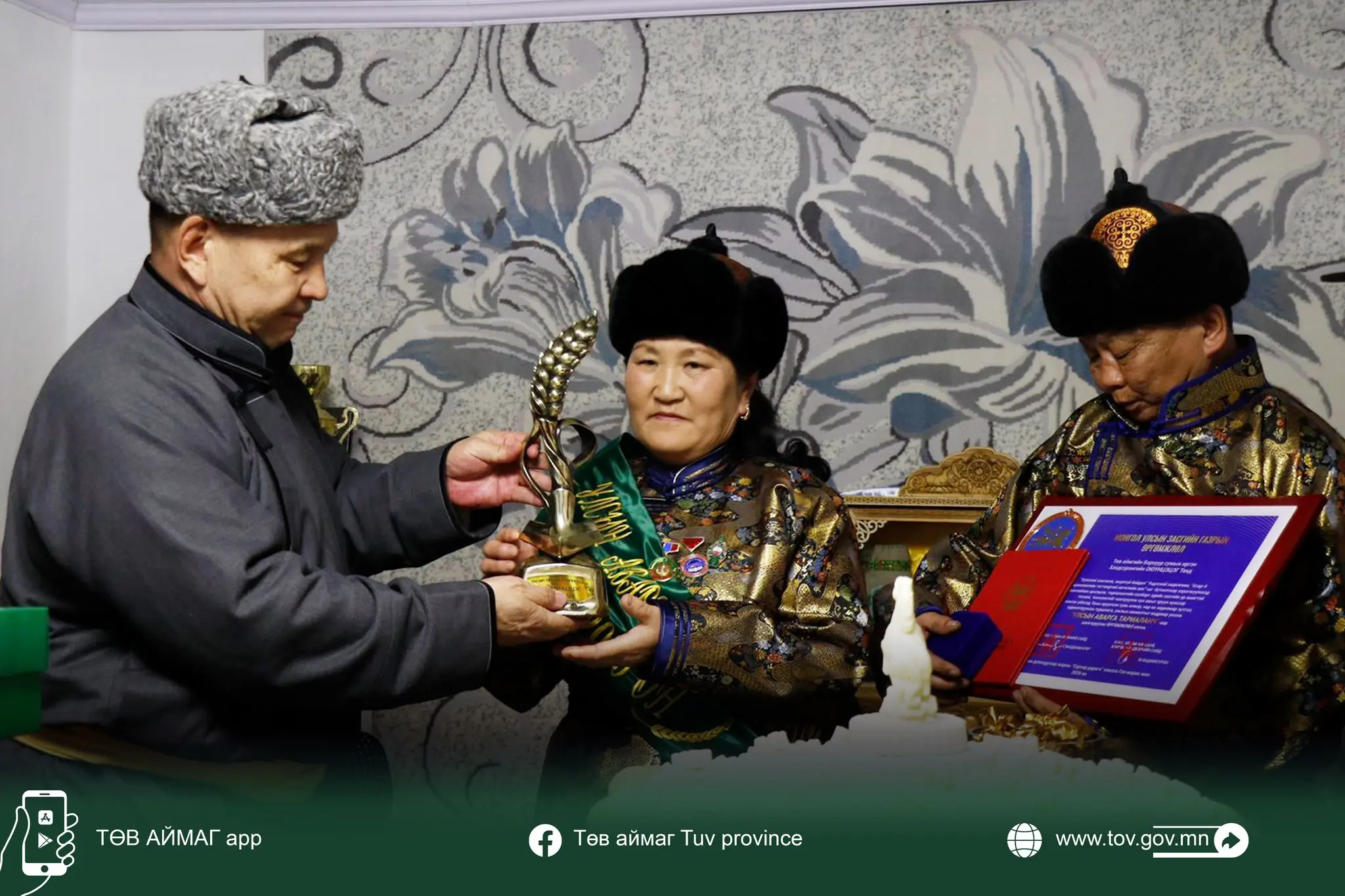 Улсын аварга тариаланчаар шалгарсан Төв аймгийн Борнуур сумын иргэн Хандсүрэнгийн Оюунцэцэгийн шагналыг гардууллаа.