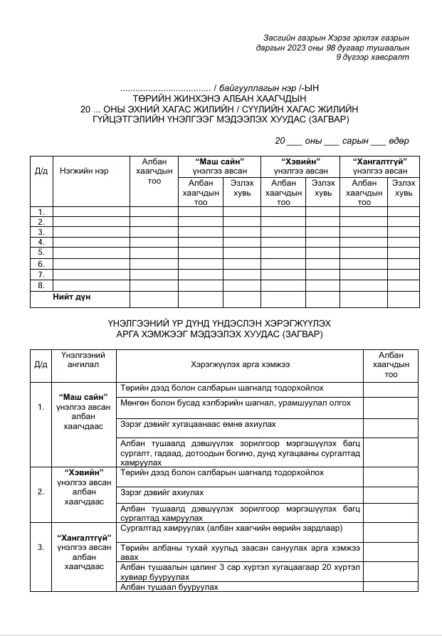 Хариуцагч: Хяналт-шинжилгээ, vнэлгээ мэдээллийн сан хариуцсан мэргэжилтэн: Ч. Балжинням Утас: 86864416 И майл: baljinnyam.0915@gmail.com