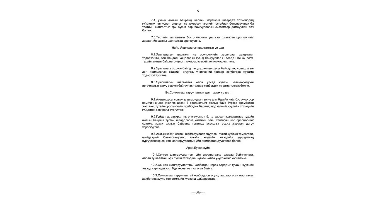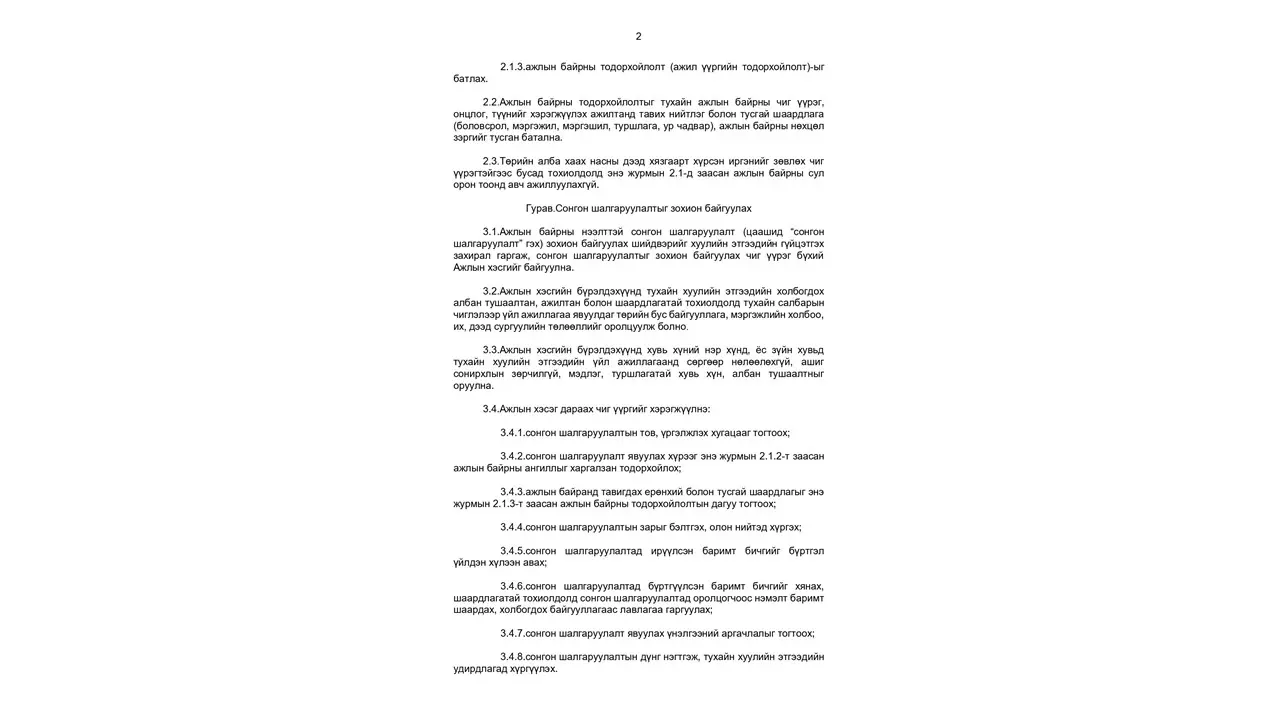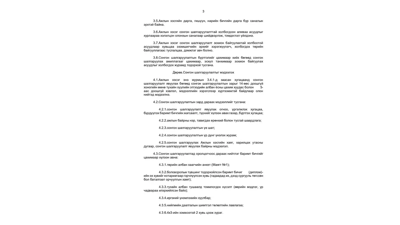 Албан хаагч, ажилчныг сонгон шалгаруулах журам