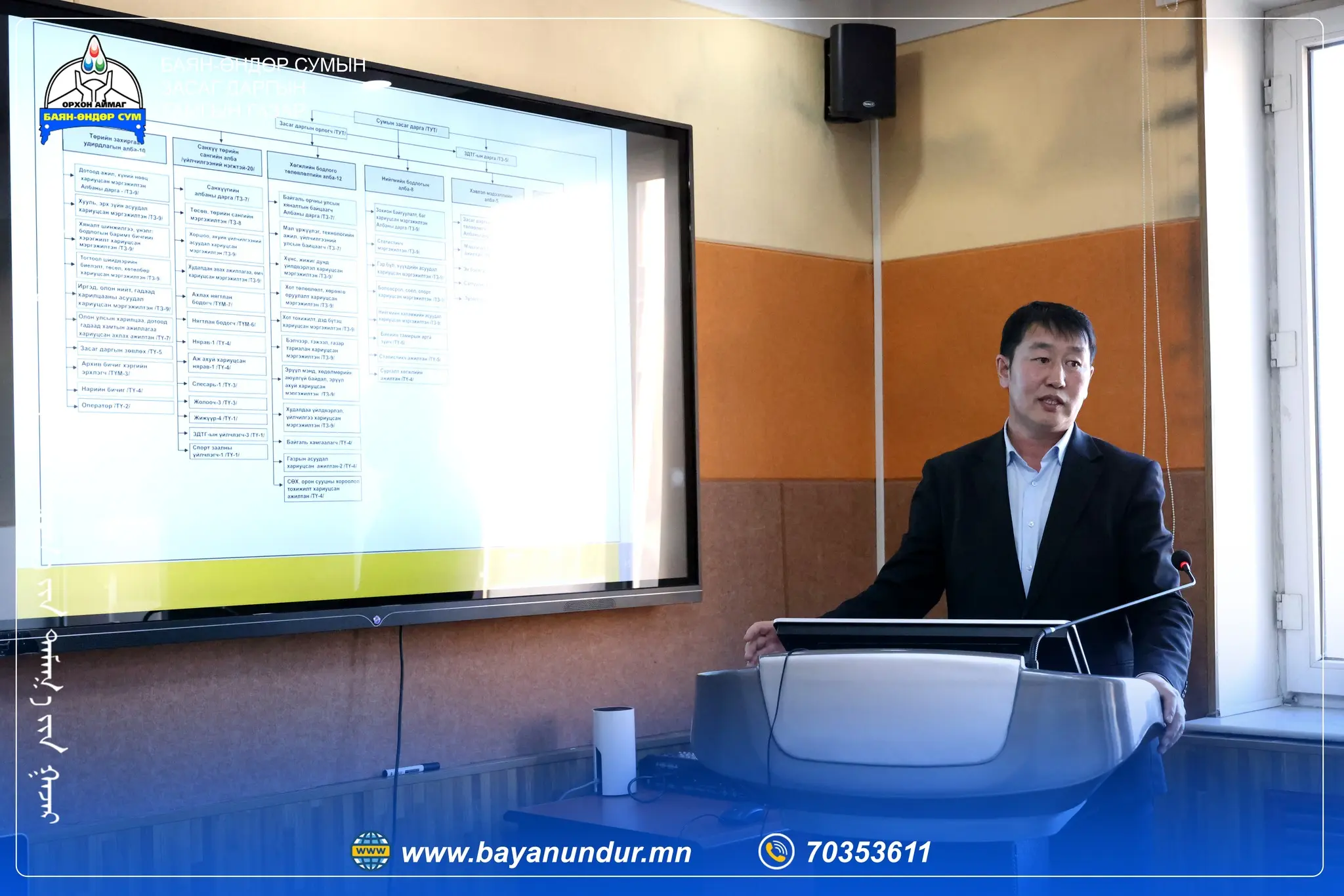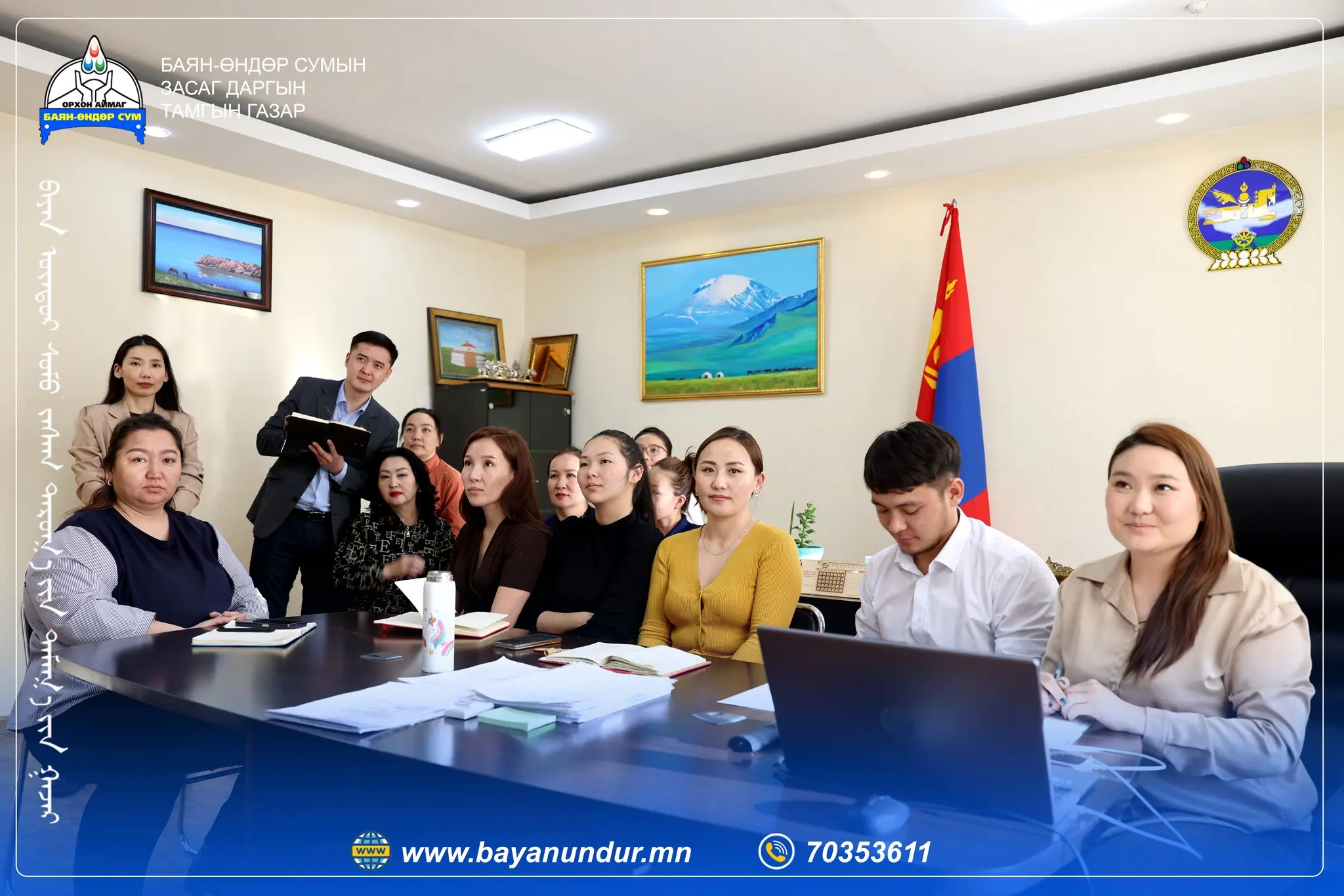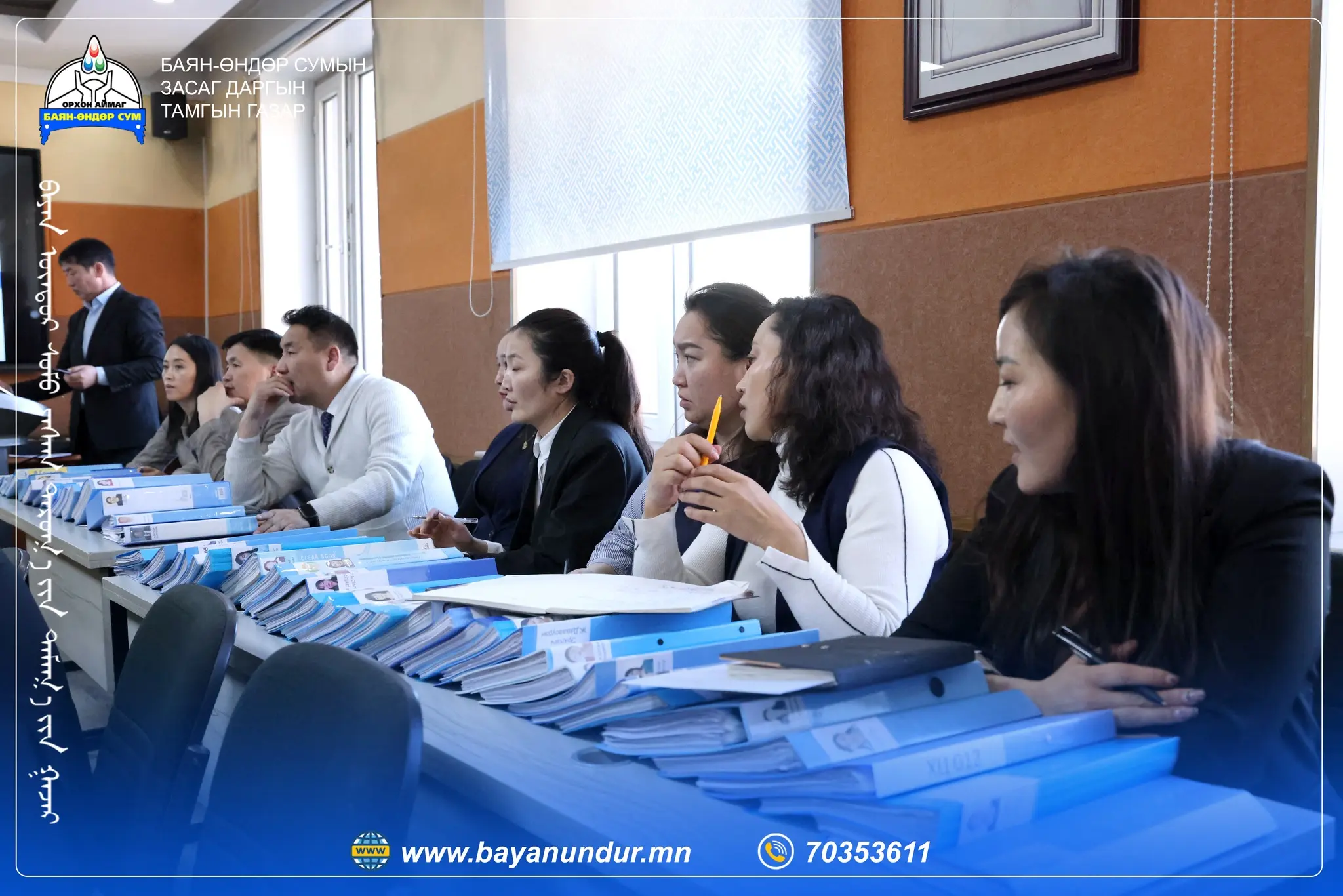 Энэ жил ТАЗ-ийн 30 жилийн ой тохиож байгаа бөгөөд ойн хүрээнд энэ оны эхний улиралд багтаан нийт 330 суманд ажиллаж төрийн байгууллагын үйл ажиллагаанд хяналт шалгалт хийж, мэргэжил арга зүйн зөвлөгөө өгч, төрийн албан хаагчдын санал хүсэлтийг сонсох зорилго тавьжээ. 2 дугаар сарын 20-ны өдөр Баян-Өндөр сумын албан хаагчидтай уулзалт зохион байгуулж албан хаагчдаас гарсан санал хүсэлтийг эрэмбэлэн харьяа яамд, агентлагуудтай хамтран шийдэл гаргаж, үр дүнд хүрч ажиллах нь ажлын хэсгийн гол зорилго юм. Мөн Төрийн албан хаагчдад танхим болон цахимаар сургалт зохион байгууллаа. Тус сургалтад Баян-Өндөр сумын Тамгын газрын болон 26 багийн албан хаагчид оролцлоо.