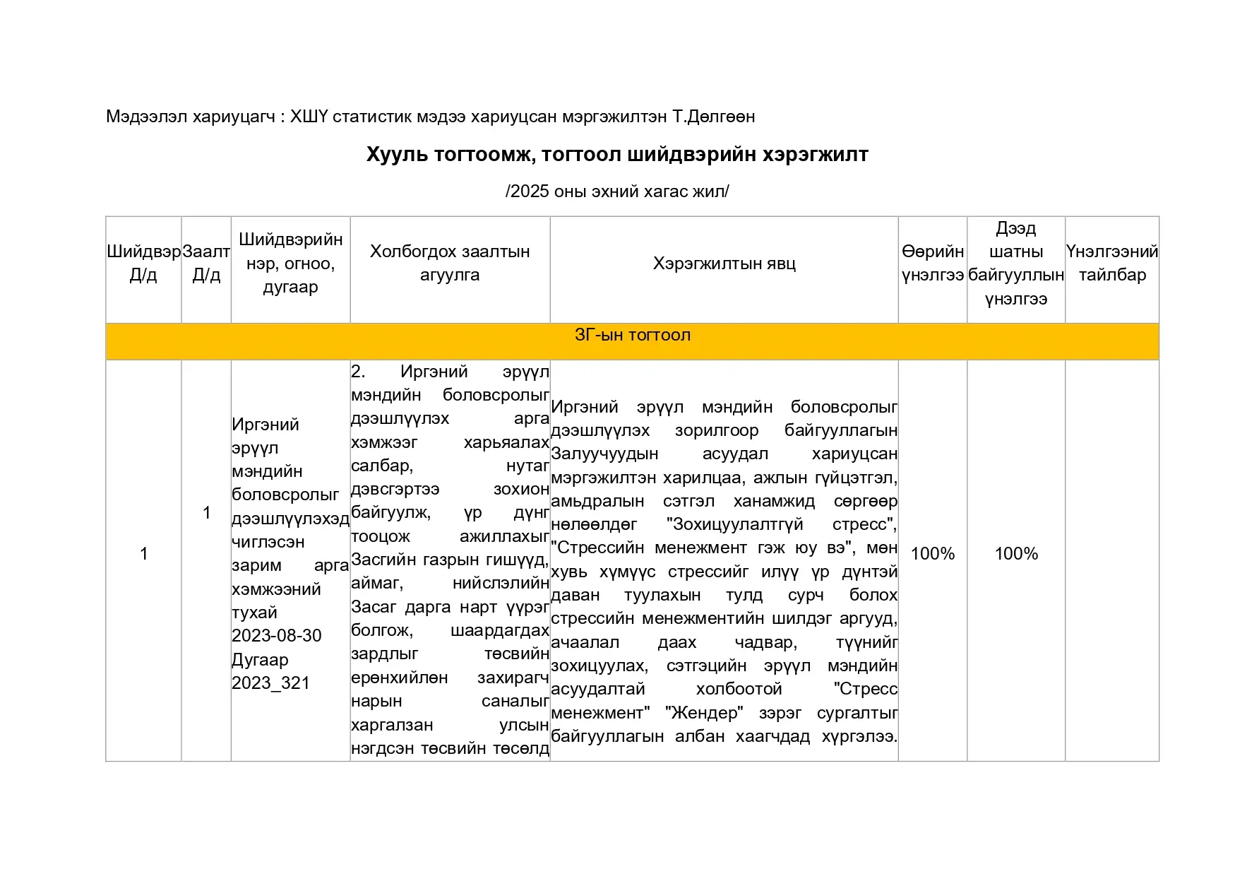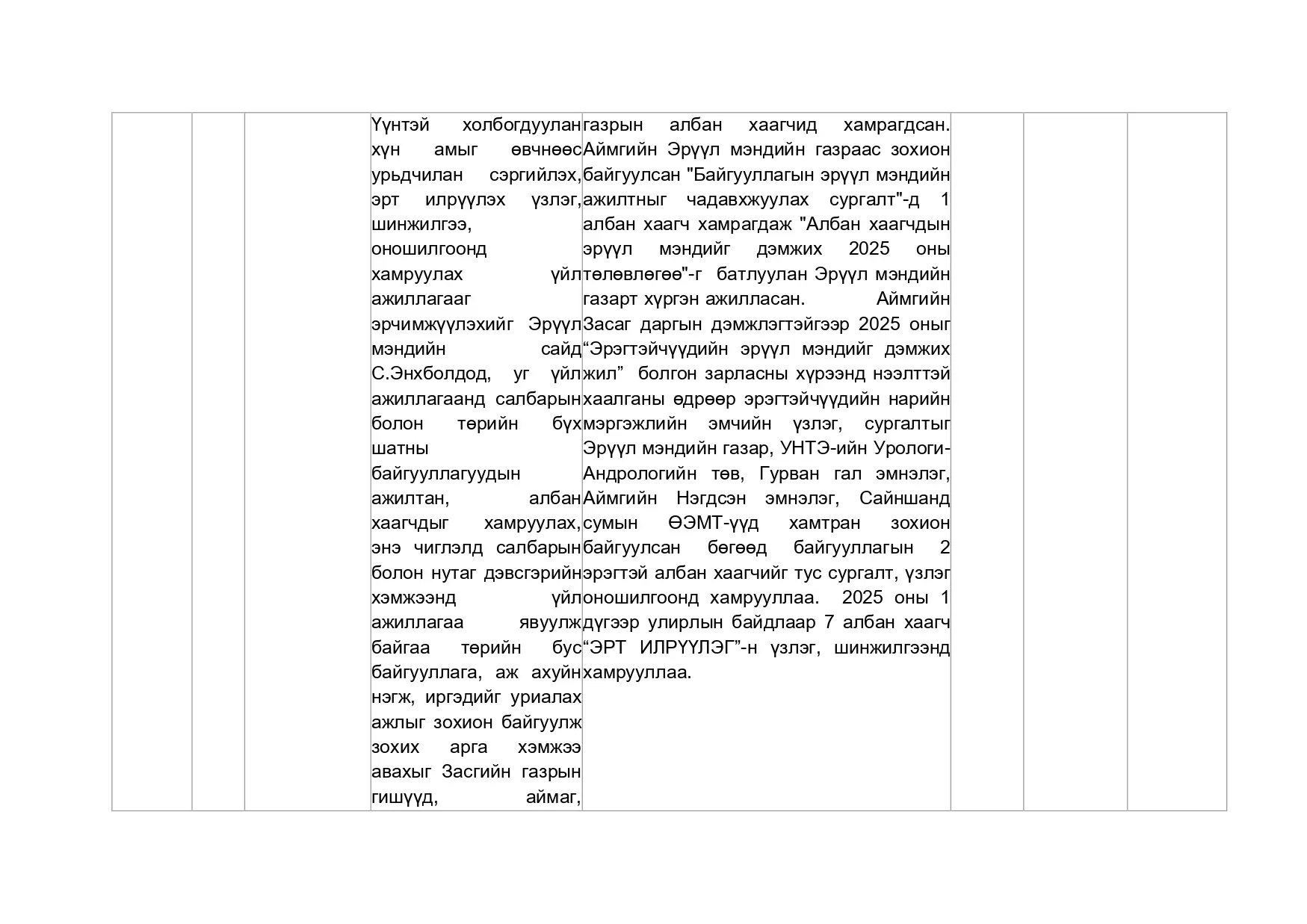 ХУУЛИЙН ХЭРЭГЖИЛТИЙН ҮР ДАГАВРЫН ҮНЭЛГЭЭНИЙ ТАЙЛАН - ЭХНИЙ ХАГАС ЖИЛ 2025