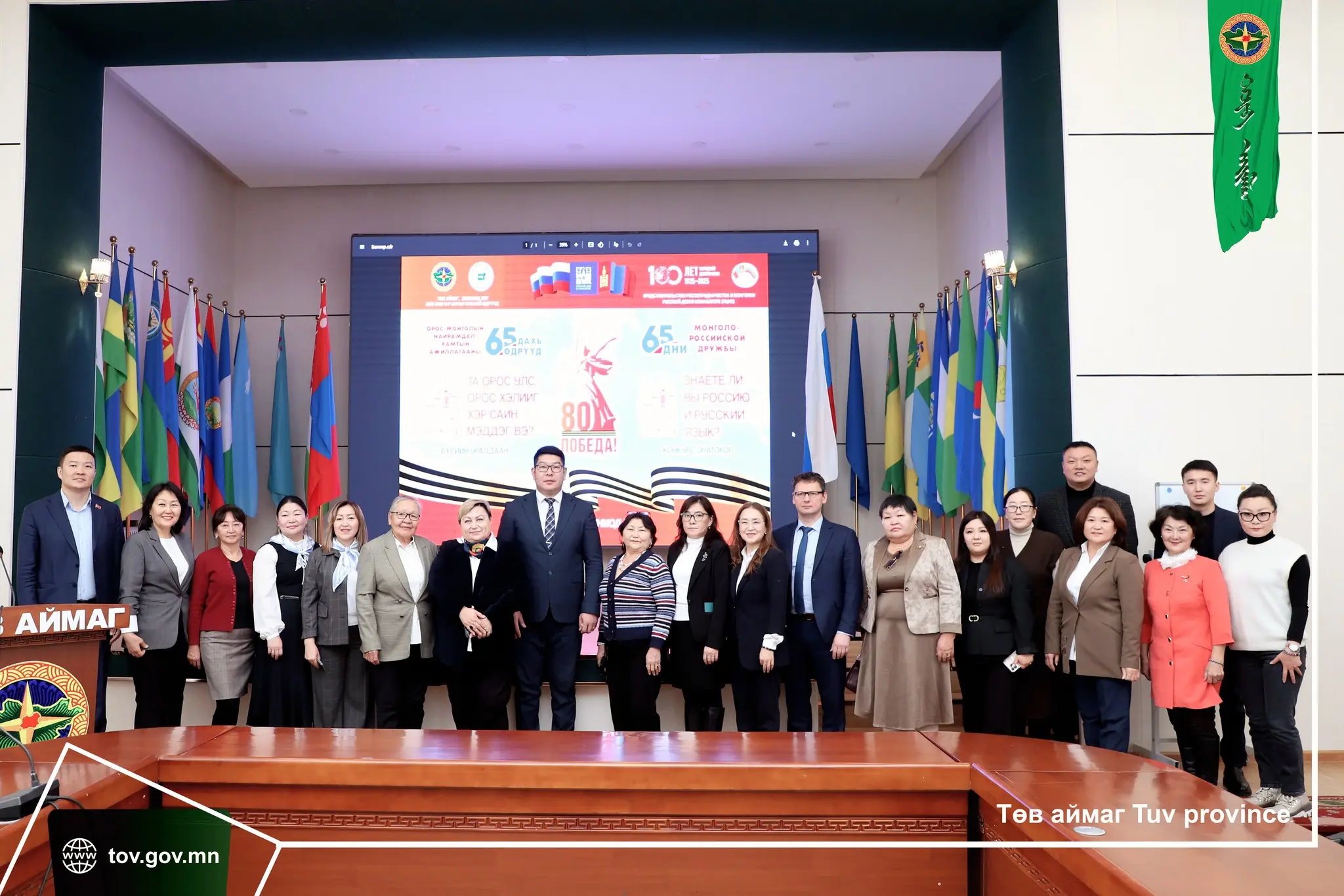 Монгол-Оросын найрамдал хамтын ажиллагааны 65 дахь өдрийг тохиолдуулан Улаанбаатар дахь Русский дом, Найрамдлын Нийгэмлэгүүдийн Монголын эвлэл хамтран 2025 оны 11 дүгээр сарын 14, 15-ны өдрүүдэд Төв аймгийн Зуунмод хотноо “Орос хэл, соёлын бүсийн баяр”-ыг зохион байгуулах гэж байна. Энэ хүрээнд өнөөдөр аймгийн Засаг даргын зөвлөх Б.Отгонбаяр, ЗДТГ-ын дарга С.Цогбаяр болон бусад албаны бүрэлдэхүүн ОХУ-аас Монгол Улсад суугаа Элчин сайдын яамны зөвлөх, Россотрудничество агентлагийн Монгол Улс дахь төлөөлөгийн газрын тэргүү Валерия Валерьевна Кильпякова тэргүүтэй Улаанбаатар хот дахь Русский домын зочид болон Буриад Улсын их сургуулийн төлөөлөгчдийг хүлээн авч уулзлаа. “Орос хэл, соёлын бүсийн баяр”-ын хүрээнд “Та Орос Улс, орос хэлийг хэр сайн мэдэх вэ?” интерактив асуулт хариултын тэмцээн, төгсөх ангийн сурагчдын дунд математик, хими, орос хэлний хичээлүүдээр “Хувийн ажиллагаа” сэдэвт шалгалт авах, орос хэлний багш нарын дунд “Дугуй ширээ”-ний уулзалт хийх, ОХУ, ЗХУ-д сургууль төгссөн төгсөгчид, орос хэлний багш нарын уулзалт зэргийг зохион байгуулахаар төлөвлөсөн байна. “Орос хэл, соёлын бүсийн баяр”-т Төв, Орхон, Дархан-Уул, Сэлэнгэ, Булган аймгийн Ерөнхий боловсролын сургуулийн төгсөх ангийн сурагчид, орос хэлний багш нар оролцох бөгөөд дээрх үйл ажиллагаануудад оролцож, шилдгүүдээ шалгаруулж олон олон боломжийн эзэд болох юм. Түүнчлэн Монгол-Оросын найрамдал хамтын ажиллагааны 65 дахь өдрийн хүрээнд Улаанбаатар дахь Русский домын орос хэлний арга зүйч Ерөнхий боловсролын сургуулиудын ахлах ангийн сурагчдад Оросын их дээд сургуулиудад үнэ төлбөргүй суралцах боломжийн тухай мэдээлэл өгөх бол Ерөнхий боловсролын Нэгдүгээр сургуулийн “Орос хэлний төв”-тэй танилцаж, “Баярлалаа, эх орон минь” баримтат киног хүүхэд, залуучуудад үзүүлэх юм.