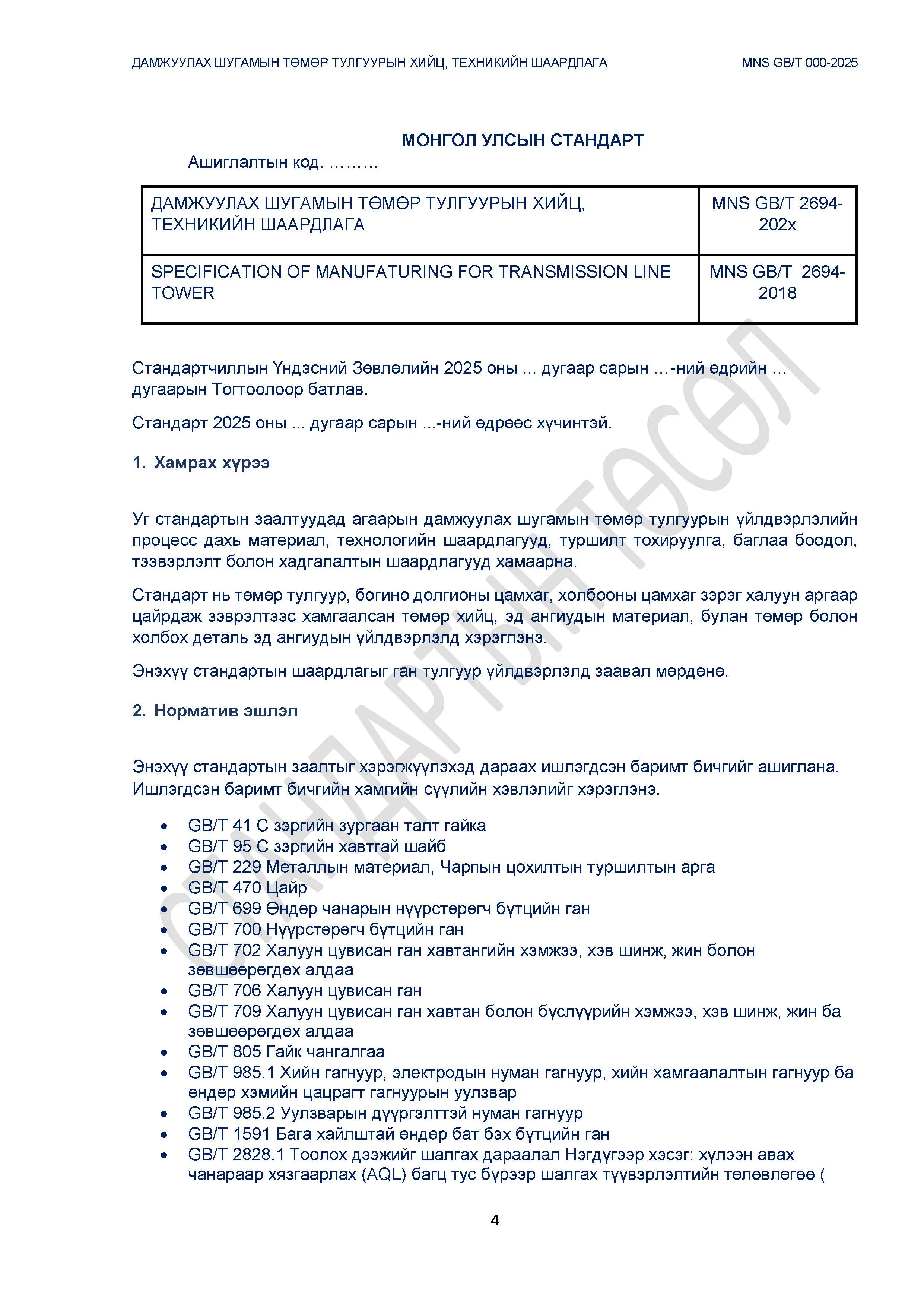 MNS GB/T 2694-2026, Дамжуулах шугамын төмөр тулгуурын хийц. Техникийн шаардлага
